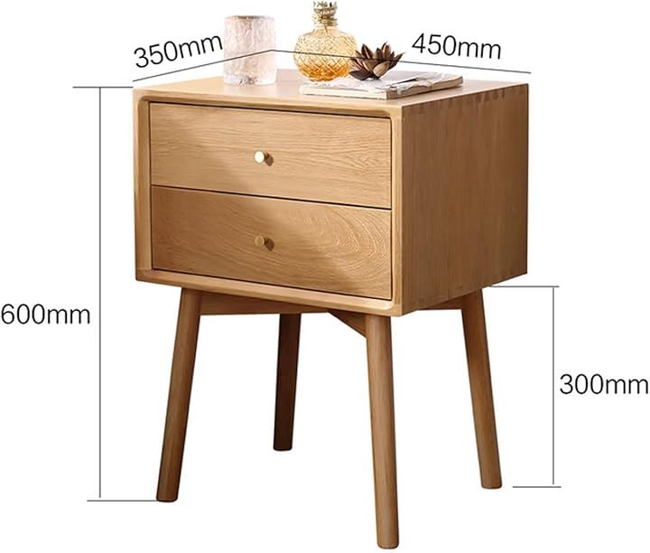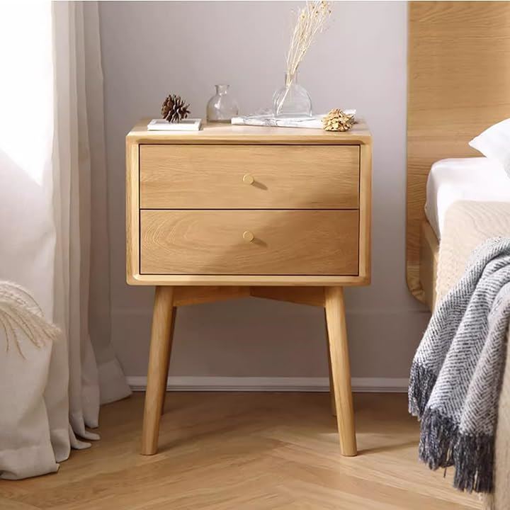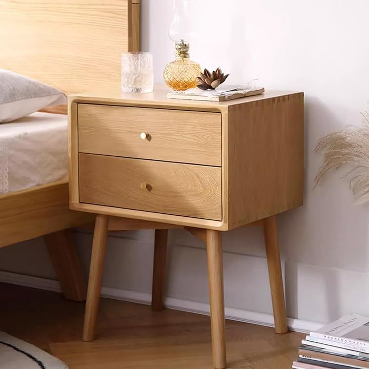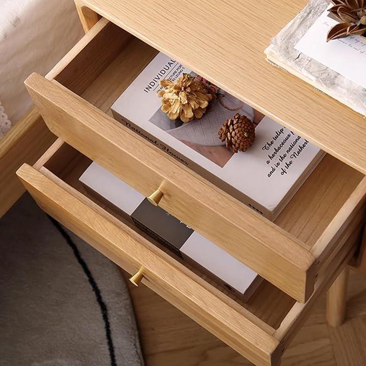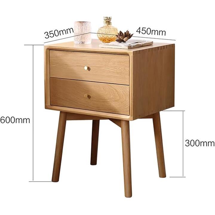 サイドテーブル ナイトテーブル ベッドサイドテーブル 100%北米産ソリッドオーク無垢材 ナイトスタンド 2段引き出し 45x35x60cm 収納付き ベッド横