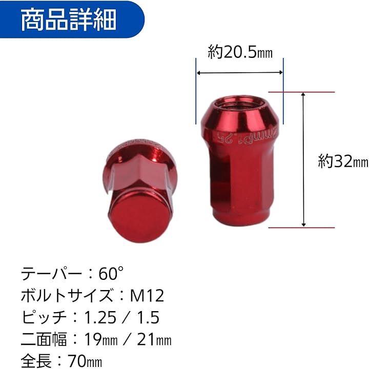 ロック ナット レッド 車用 タイヤホイールナット M12 ショートナット ラグナット レーシングナット