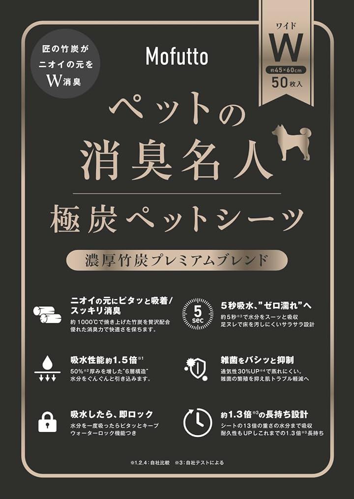モフット ペットの消臭名人 獣医推薦 超消臭 超吸収 ペットシーツ 厚型 犬用 猫用 トイレシート 吸水シート 使い捨て 竹炭を濃厚配合 ニオイスッキリ ぐんぐん吸水 足ヌレ防止 抗菌 雑菌抑制