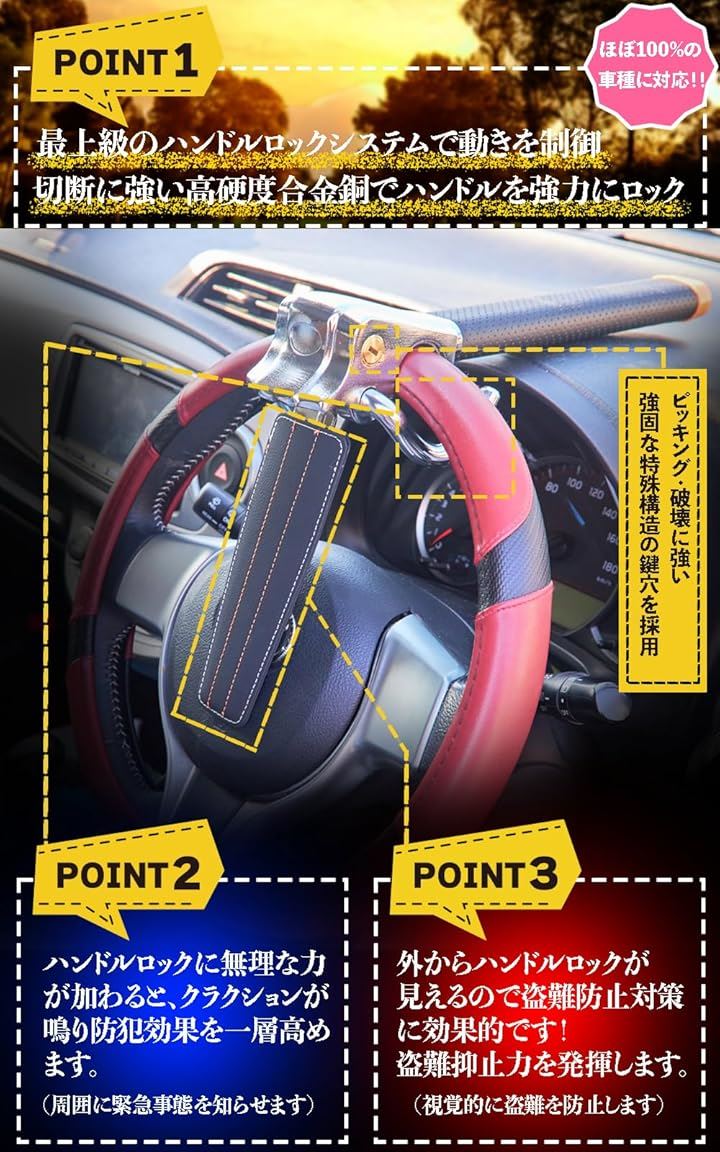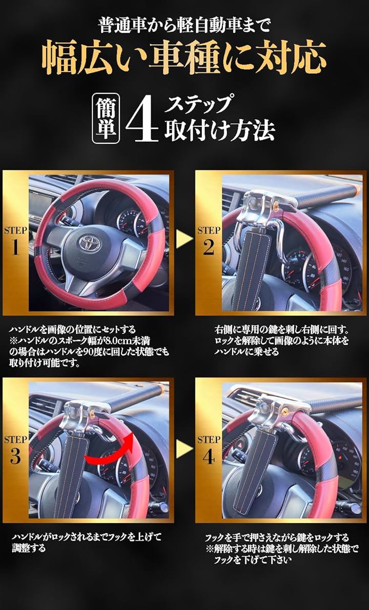 ハンドルロック ステアリングロック 盗難防止 車 リレーアタック対策 日本語取扱説明書