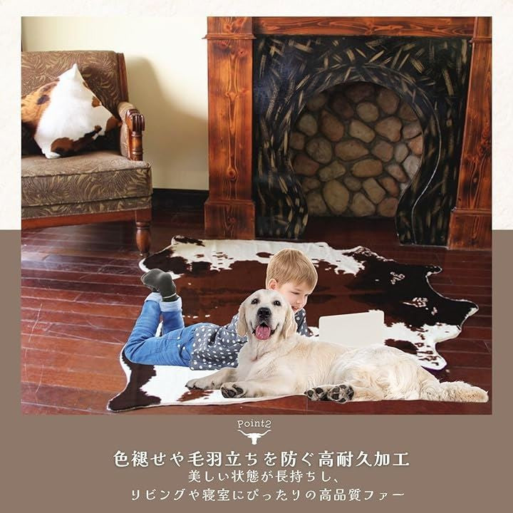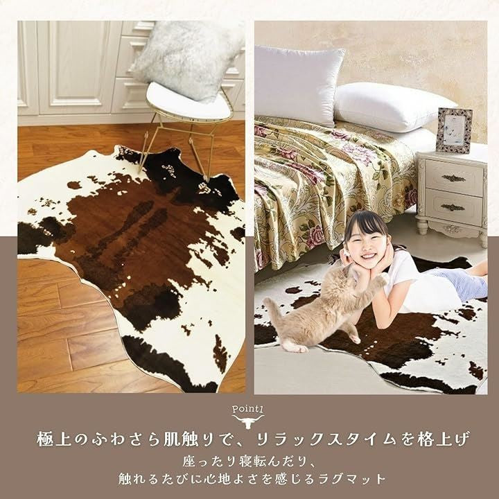 フェイクファー カーペット ラグ アニマル 牛 うし ファーラグ アクセントラグ ファーマット