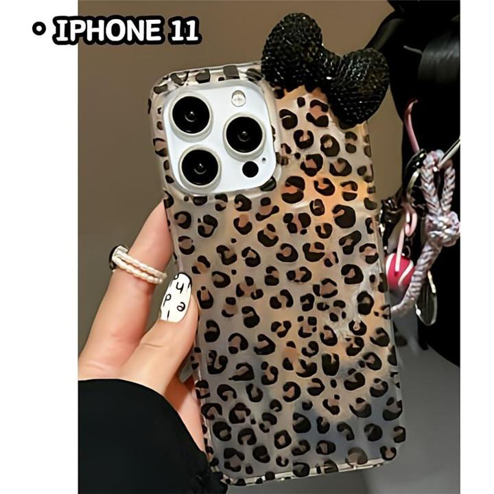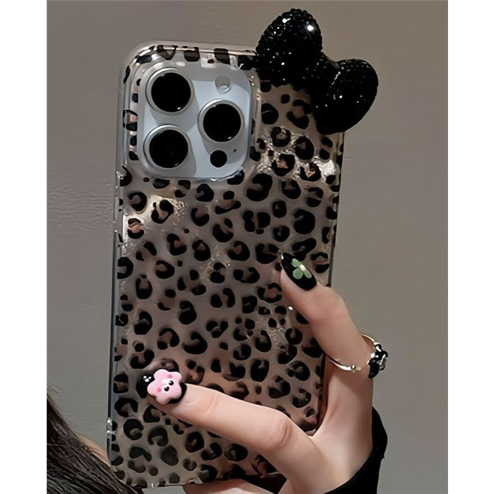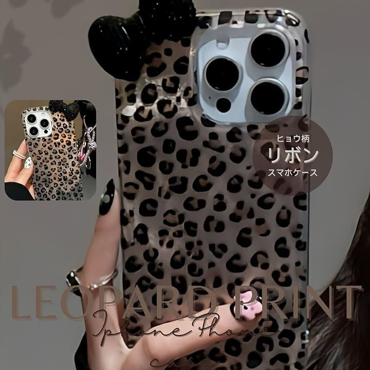 ヒョウ柄好きさんには、たまらない。リボンのアクセントを付けたスマホケース。