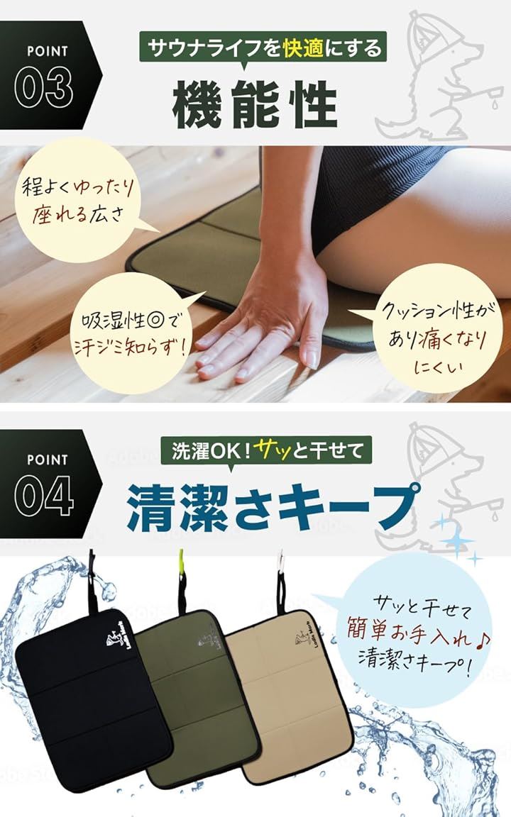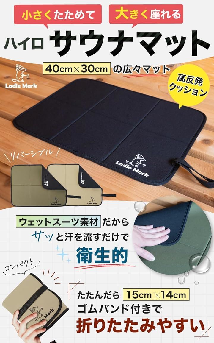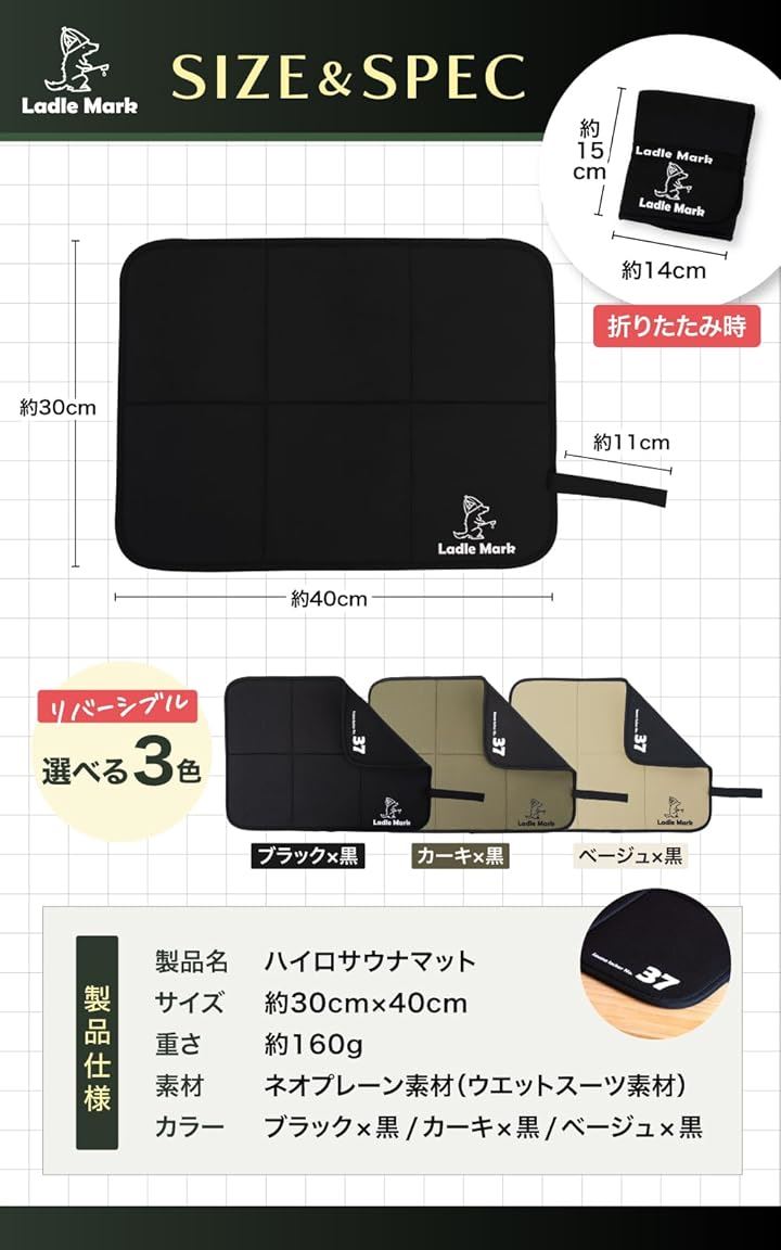 サウナマット 折りたたみ式 断熱 耐熱 防水 持ち運び便利 ネオプレーン製 5mm厚 クッション性 公共サウナ・岩盤浴・外気浴に最適 サウナグッズ