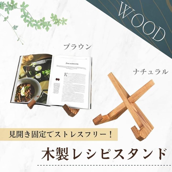 料理本に最適 レシピスタンド 木製 おしゃれ ブックスタンド 書見台 卓上 見開き固定 レシピ本スタンド