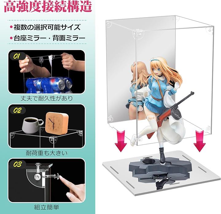 アクリルケース独自の高強度接続構造で堅牢性を実現するとともに、不測の衝突が発生してもフィギュアケースは散らばりません。お気に入りのフィギュアを保護するのに最適です。