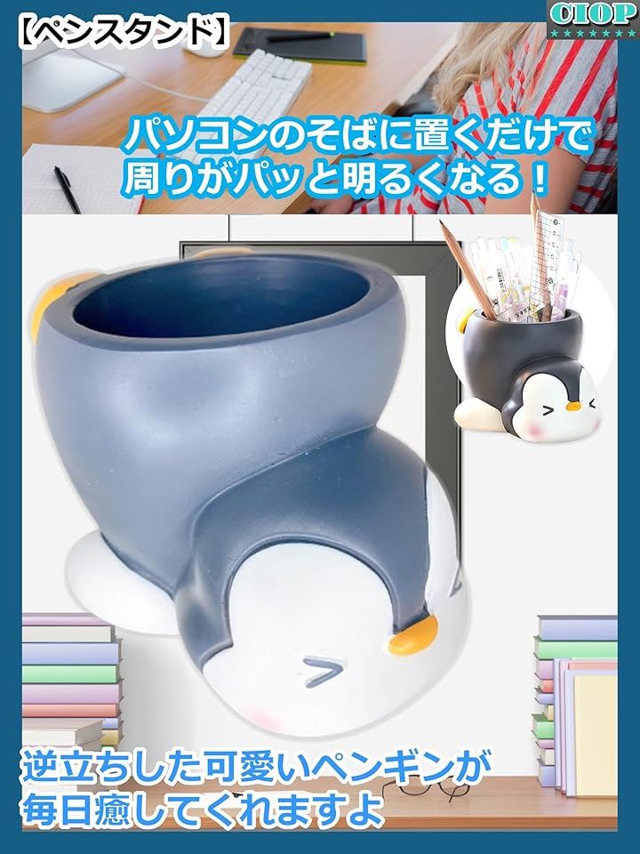 どうぶつ ペンスタンド ぺんぎん 01 逆立ち ペン立て ペンケース かわいい 可愛い おしゃれ 卓上 えんぴつ/ボールペン/シャープペン/万年筆/定規