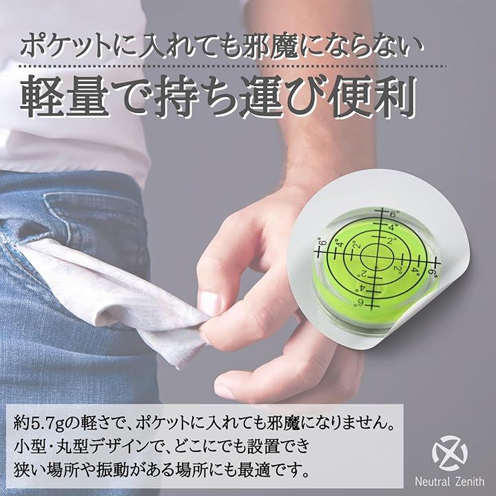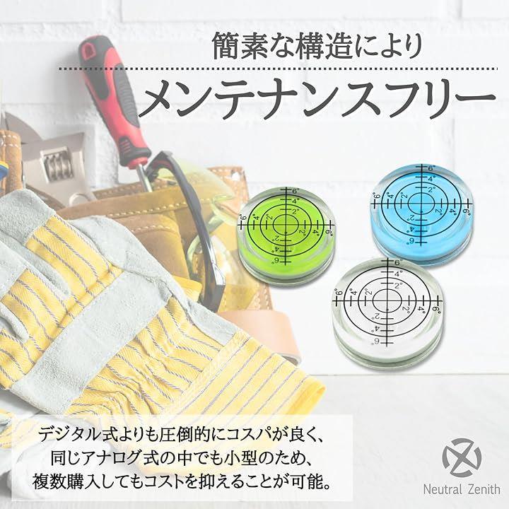 水平器 水準器 小型 ミニ水準器 コンパクト 丸型 アナログ 高精度 測定 傾斜 卓上型 透明 工具取付型