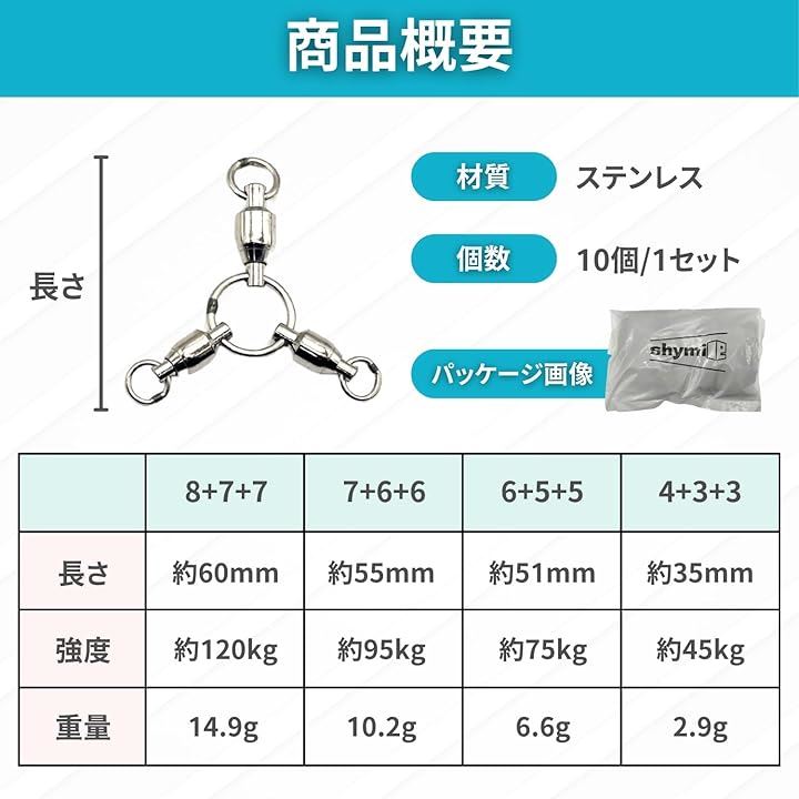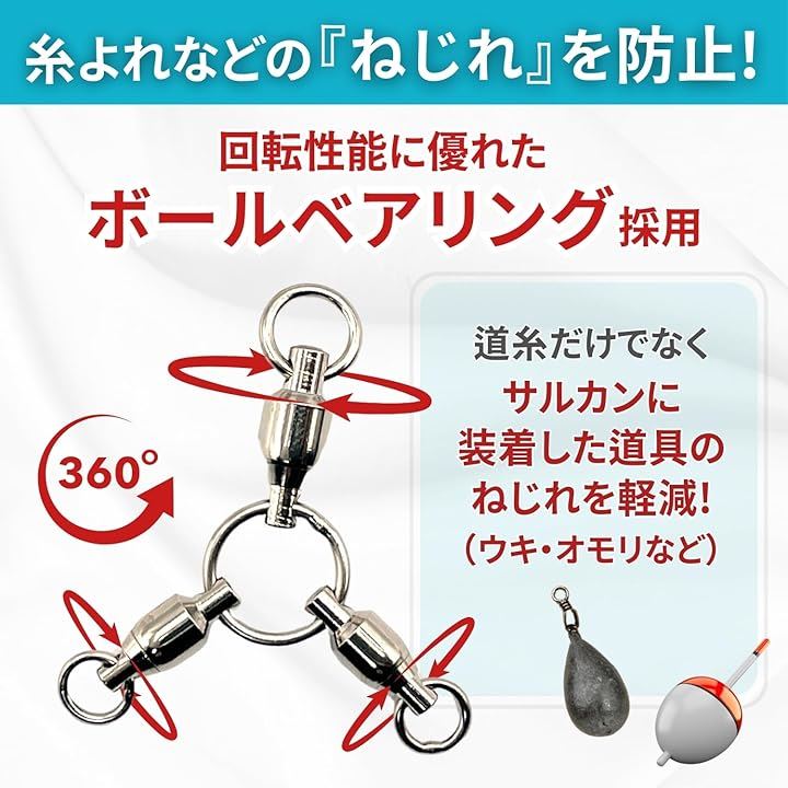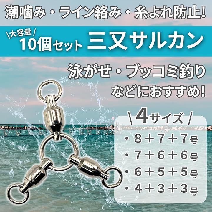 サルカン 三又サルカン 泳がせ釣り仕掛け スナップサルカン スイベル ボール ベアリング ミツマタ 魚 海 10個セット