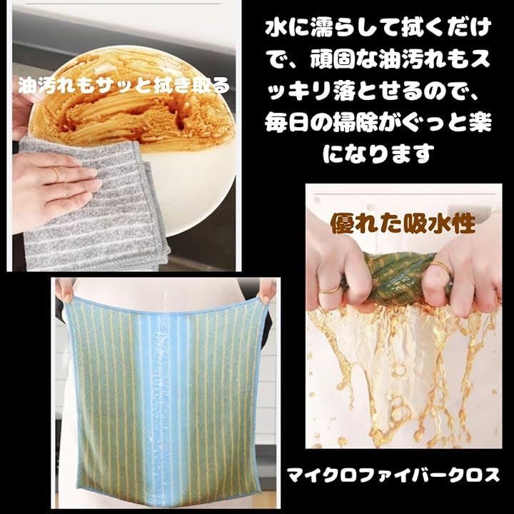 マイクロファイバー キッチンクロス 油汚れ対応 5枚セット 布巾 高吸水性クロス 水だけ