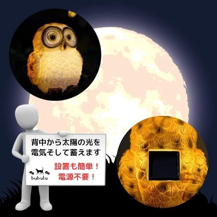 bubulu ガーデンライト 屋外 防水 ソーラー フクロウ ソーラーライト 置物 おしゃれ かわいい 置物ライト ふくろう オブジェ ガーデンベランダ 玄関プレゼント 開運縁起物