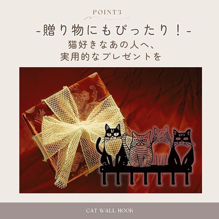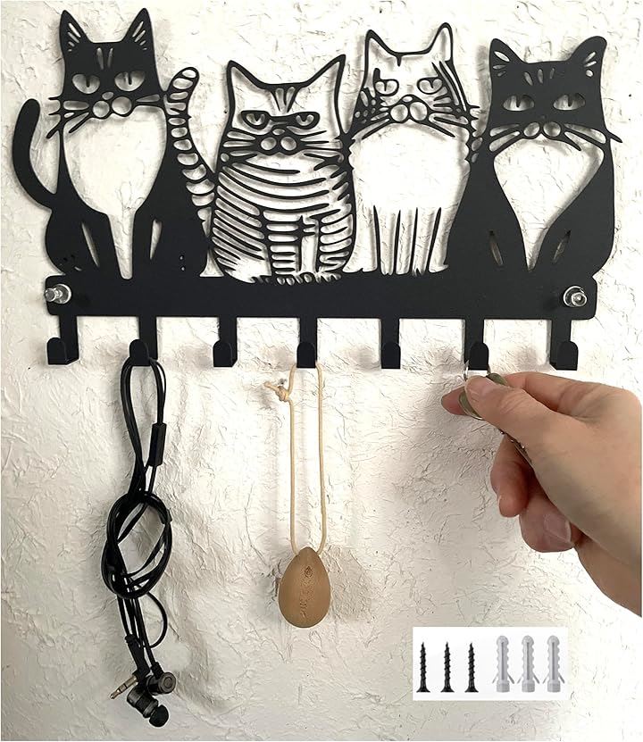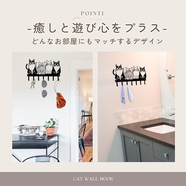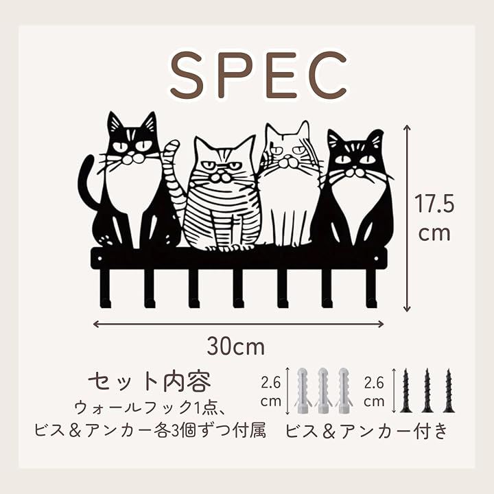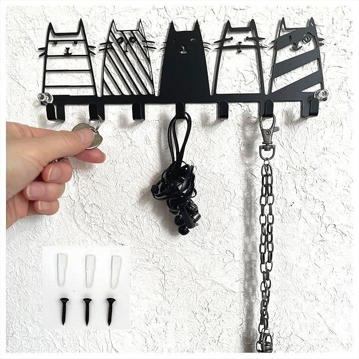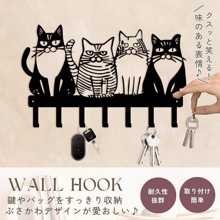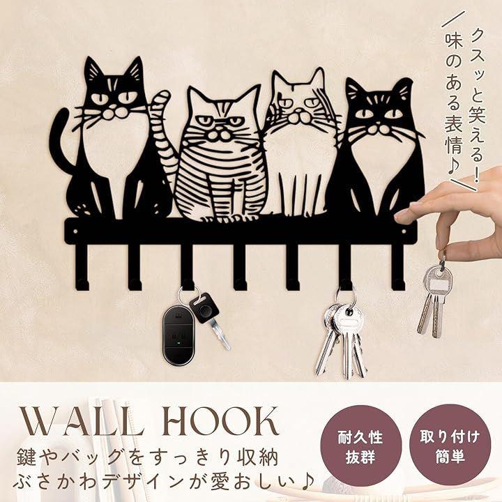 猫 ウォールフック キーフック 鍵かけ 玄関 鍵掛け 壁掛けフック 鍵フック おしゃれ ビス アンカー付き