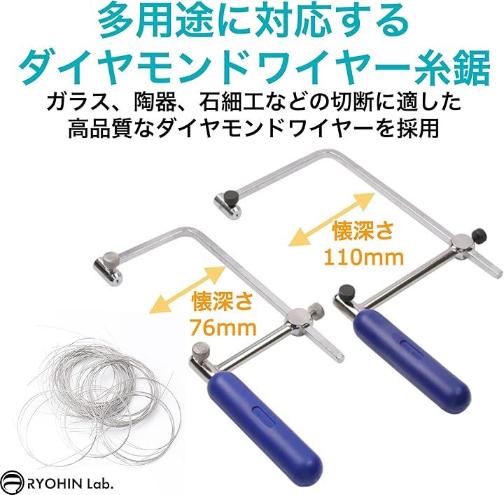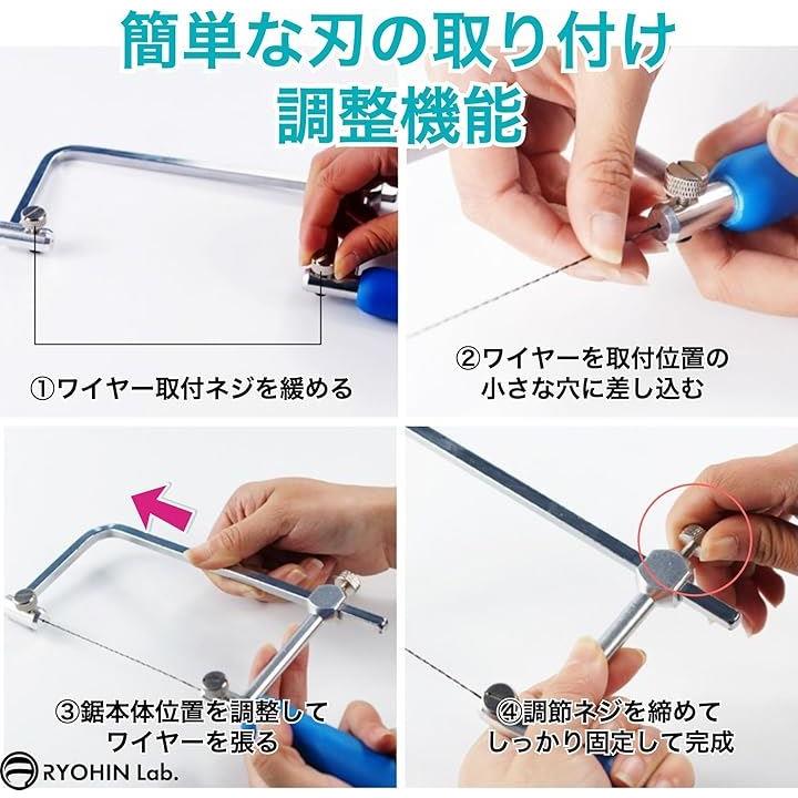 良品ラボ 糸鋸 ダイヤモンドワイヤー 極細 ワイヤーソー 糸のこぎり 切断 手動 金属 ガラス 陶器 石細工 ワンタッチ 替え刃セット Φ0.15mm 0.25mm 0.35mm 各1m付属
