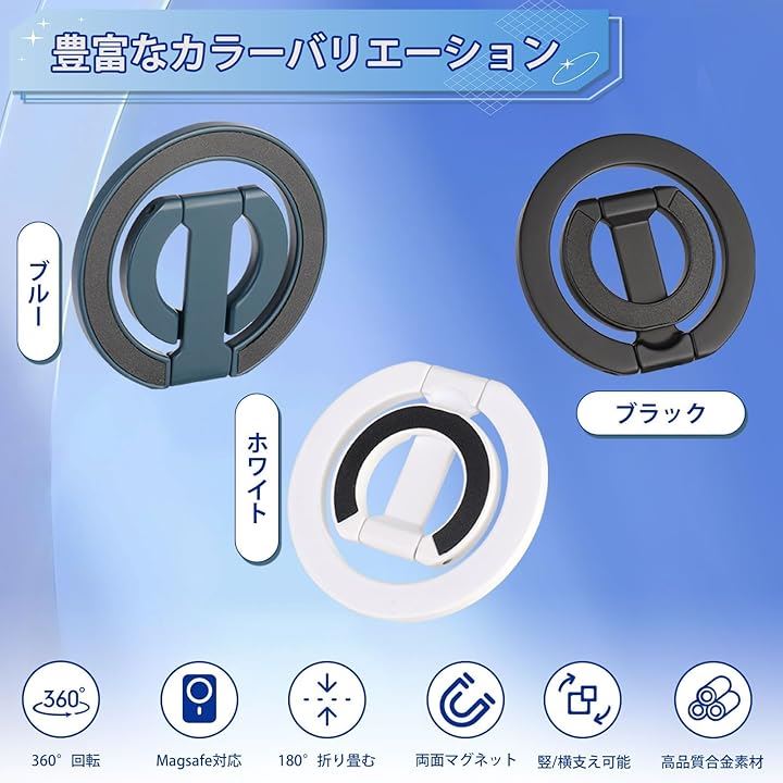 スマホリング mag 両面マグネット マグセーフ バンカーリング 薄型 携帯リング マグネットリング スタンド スマホりんぐ