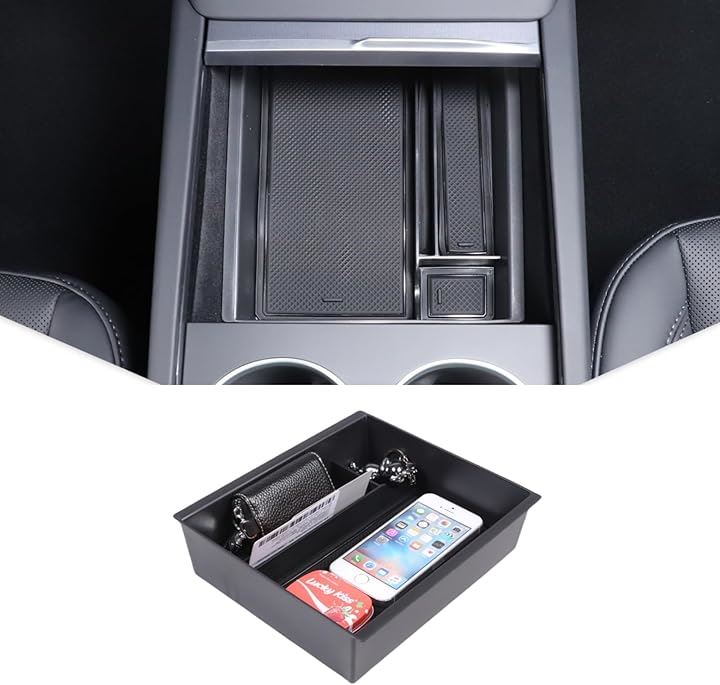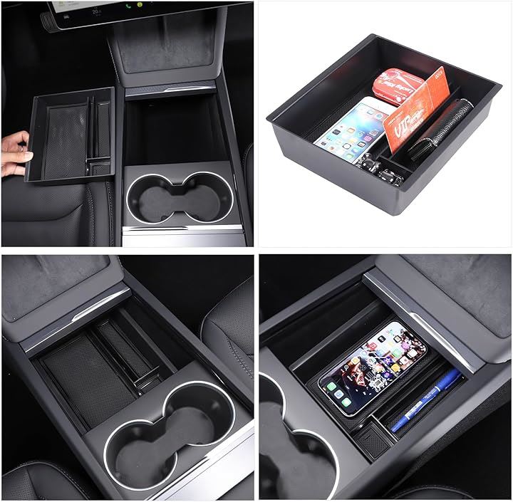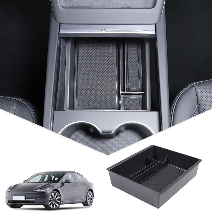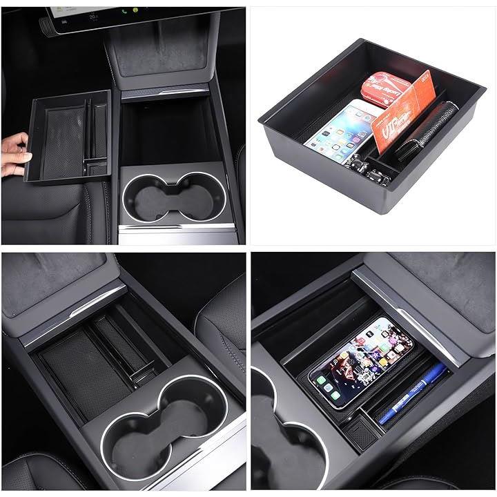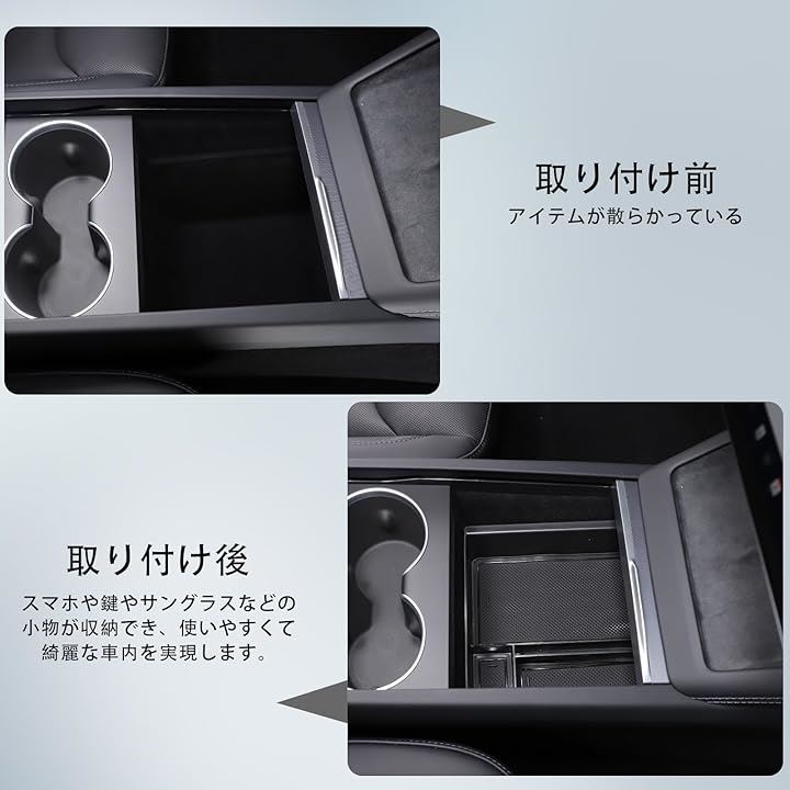 テスラ モデル3 新版 2023~2025年に対応 コンソール収納トレイ 車用収納ボックス スインサートトレイ 車収納ポケット 内蔵型コンソールボックス パーツ ABS製