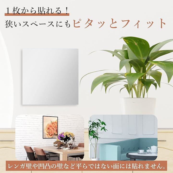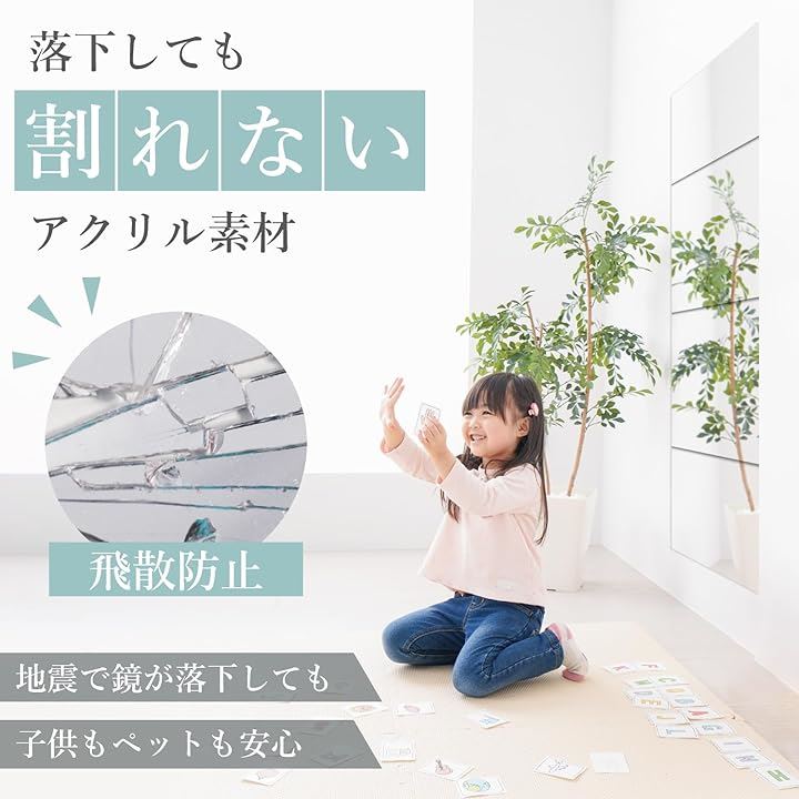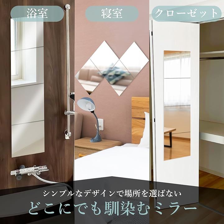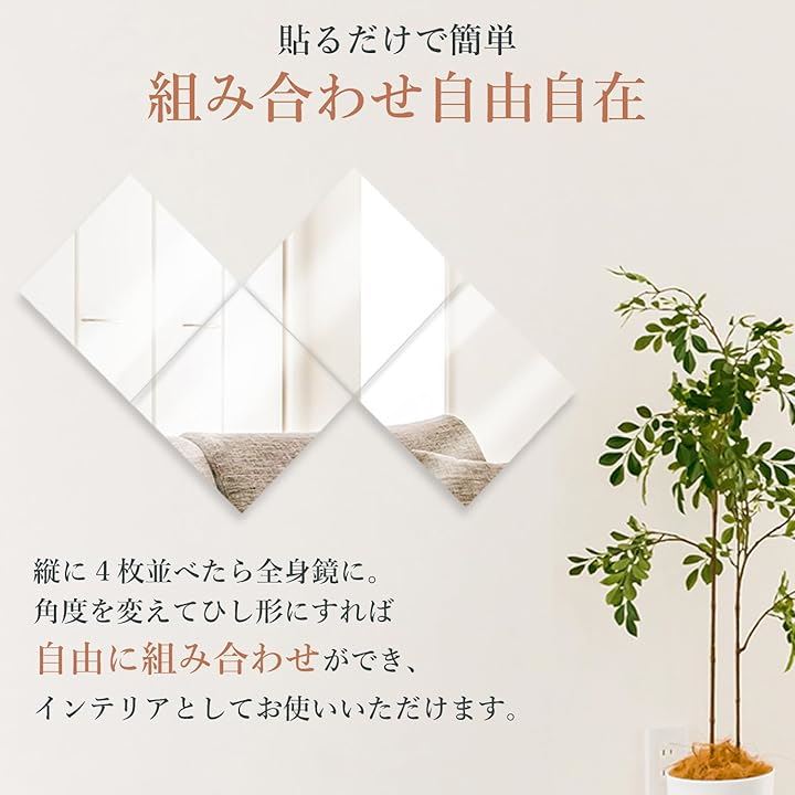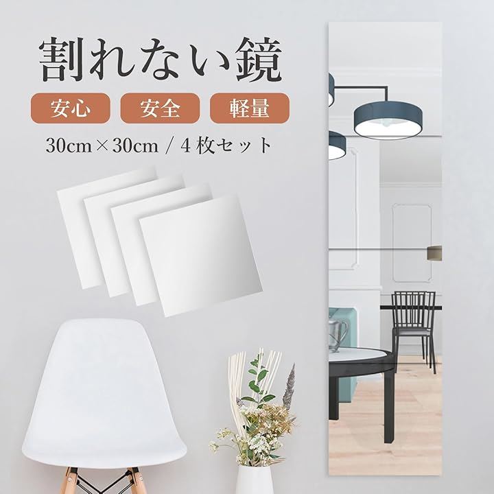 割れない鏡 姿見 全身鏡 貼れる鏡 穴あけ不要 軽量 浴室 玄関 壁 30cmx30cm 4枚セット