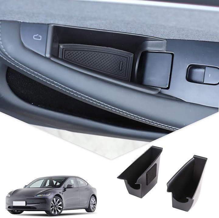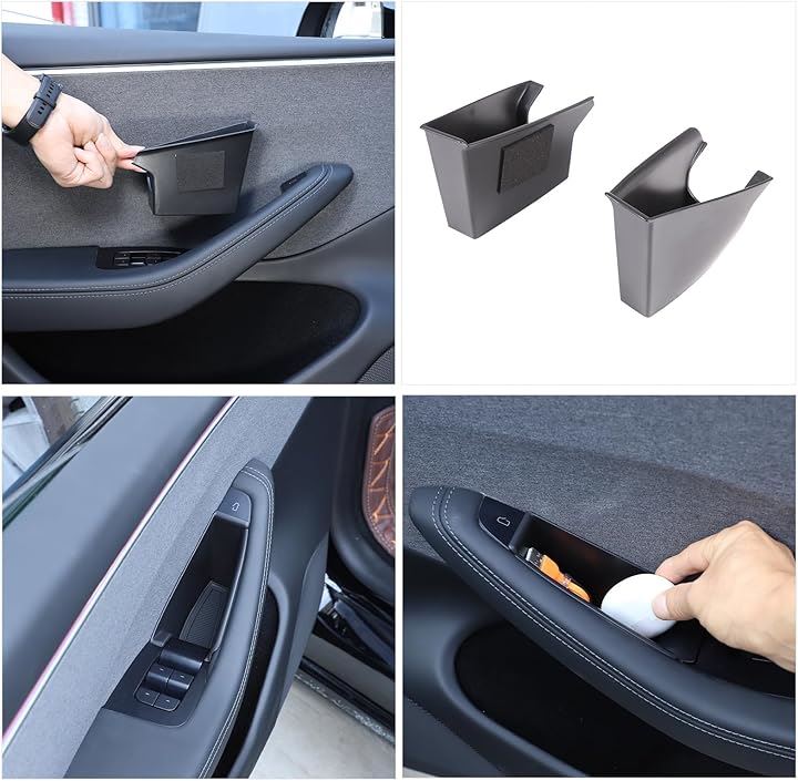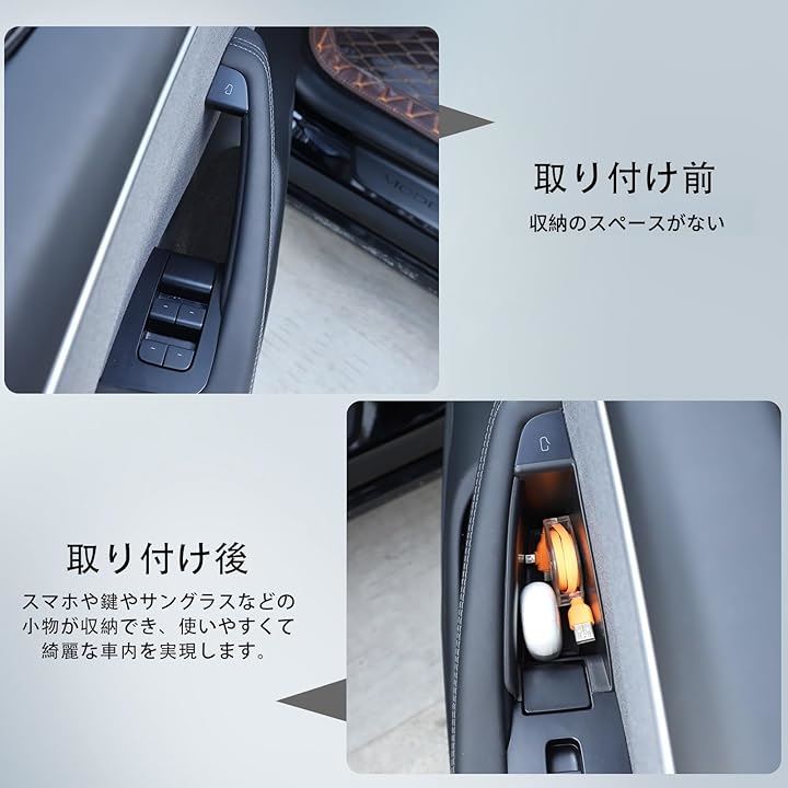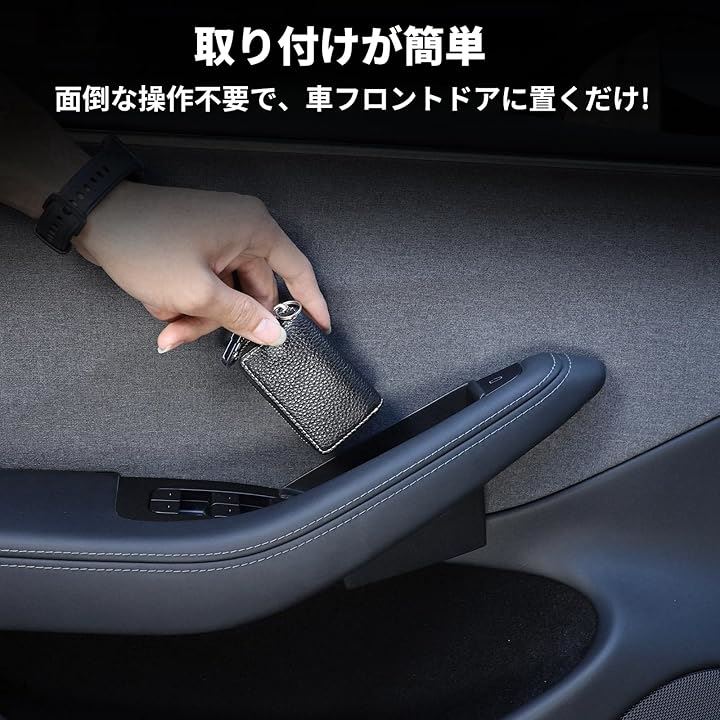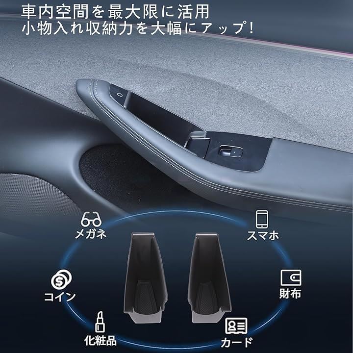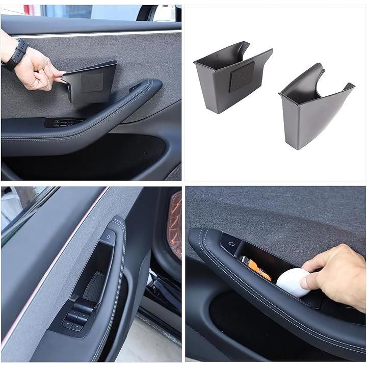 テスラ モデル3 新版 2023~2025年に対応 車ドア収納トレイ ドアハンドル収納ボックス 車ドアスインサートトレイ ドアストレージボックス 車ドアポケット 小物入れ フロントドア リアドア 内装 パーツ ABS製 2点セット