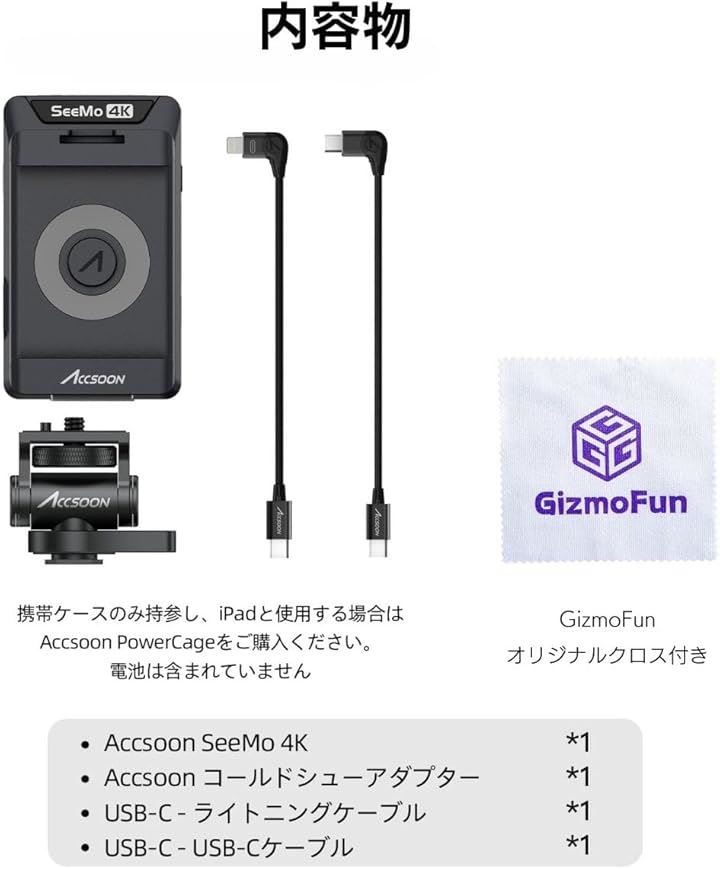 日本語マニュアル付 SeeMo 4K ビデオカメラの映像を iPhone iPad で表示できる 画像 伝送 コネクタ HDMI 30FPS / 1080p 60FPS トランスミッター SRT RTMP ストリーミング リアルタイムモニタリング iOS12以降対応