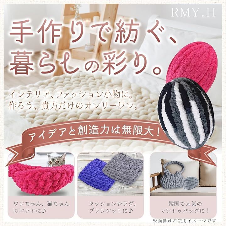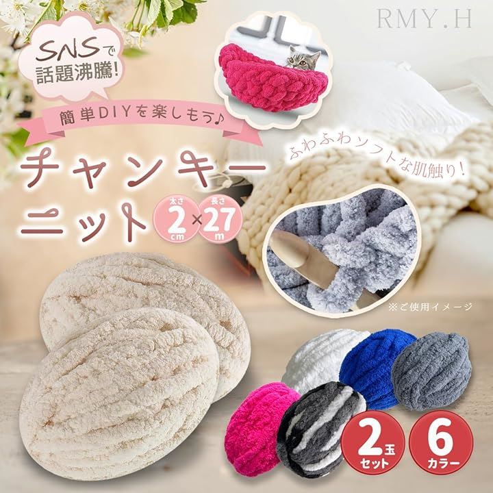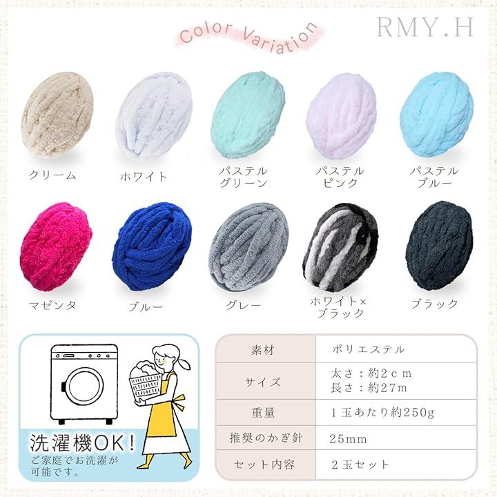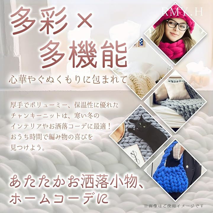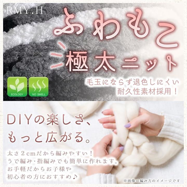 チャンキーニット 極太 毛糸 ふわふわ チャンキーヤーン 250gx2個セット マンドゥバッグがぴったり作れる