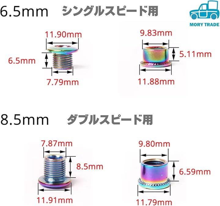 morytrade チェーンリングボルト スチール 5本 フロントギア 固定ボルト ナット フロントシングル 自転車