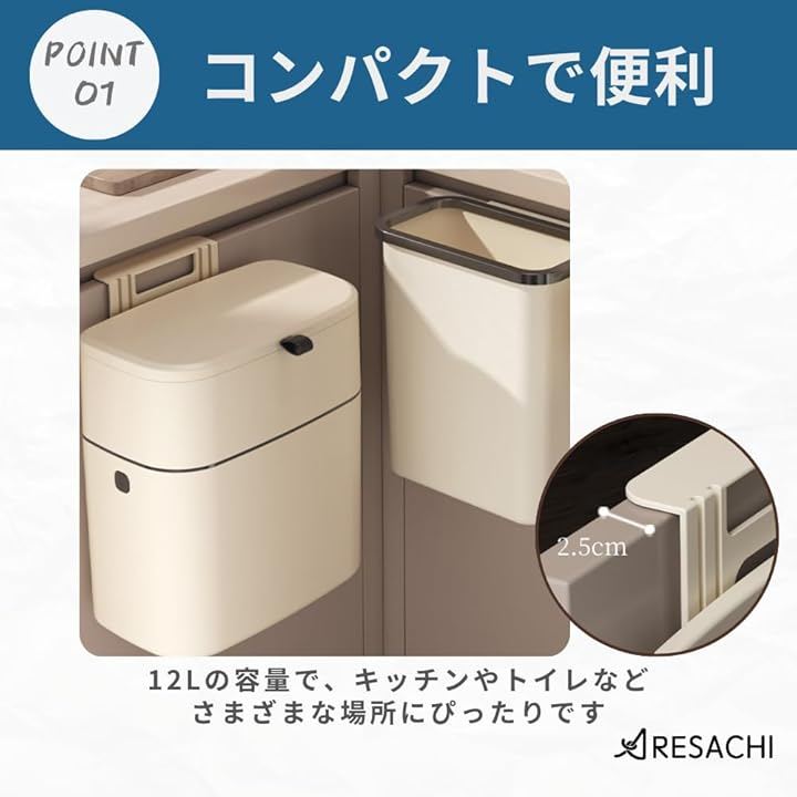 ゴミ箱 ふた付き ひっかけ 壁掛け 扉 中身が見えない キッチン トイレ 洗面所 12L