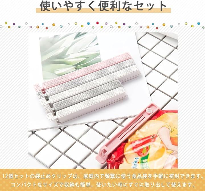 袋止めクリップ 食材保存 袋密封 酸化防止 お菓子 12個セット