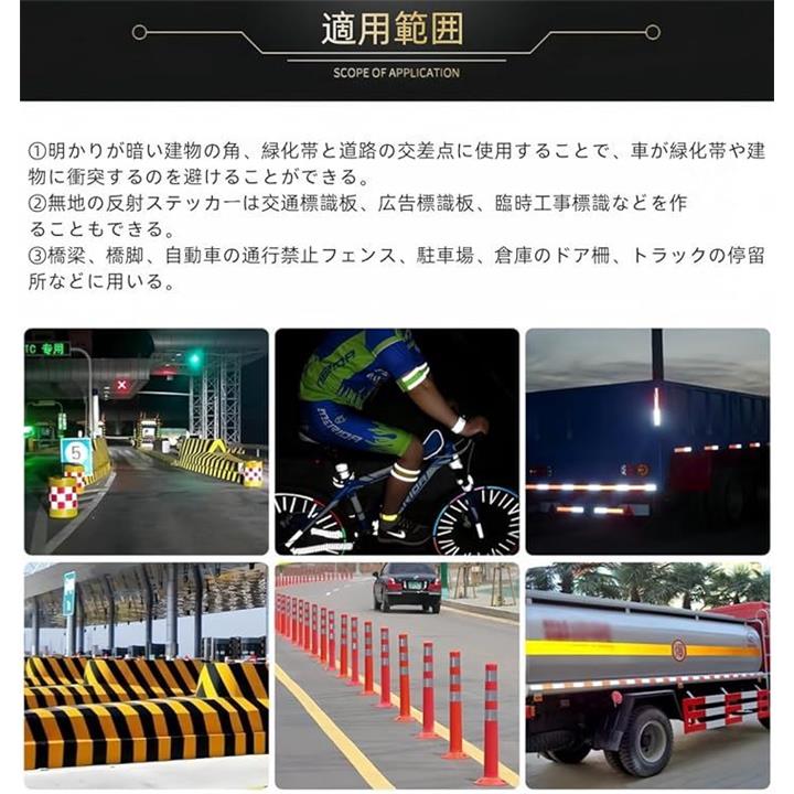 「反射テープ 屋外」暗闇や夜間の作業で安全を確保し、物の存在を目立たせることによって事故や衝突を未然に防ぐことができます。