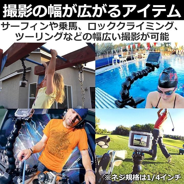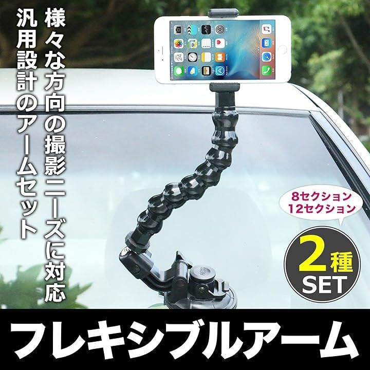 EdisonBrain フレキシブルアーム アクションカメラ 1/4インチネジ 2種セット 8セクション 12セクション グースネックジョーマウント フレックスクランプ用 ユニバーサル 汎用 一脚ホルダー