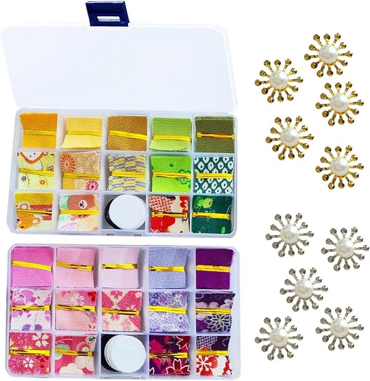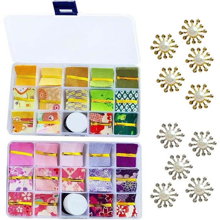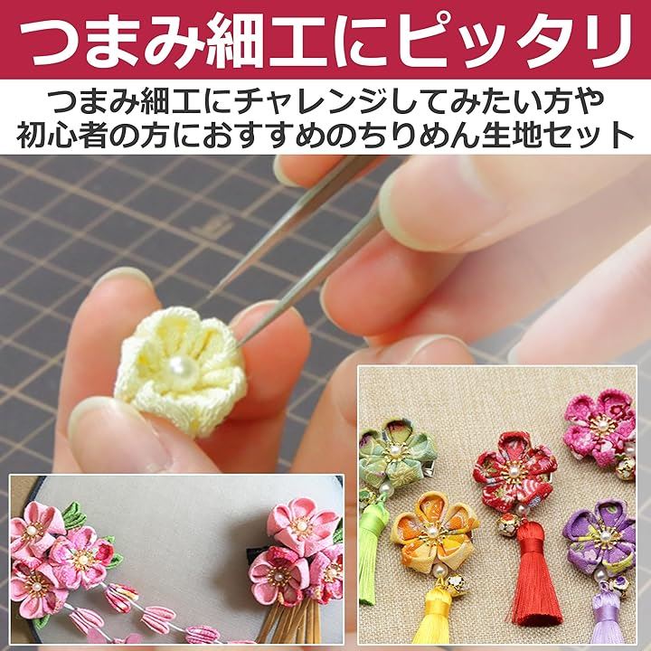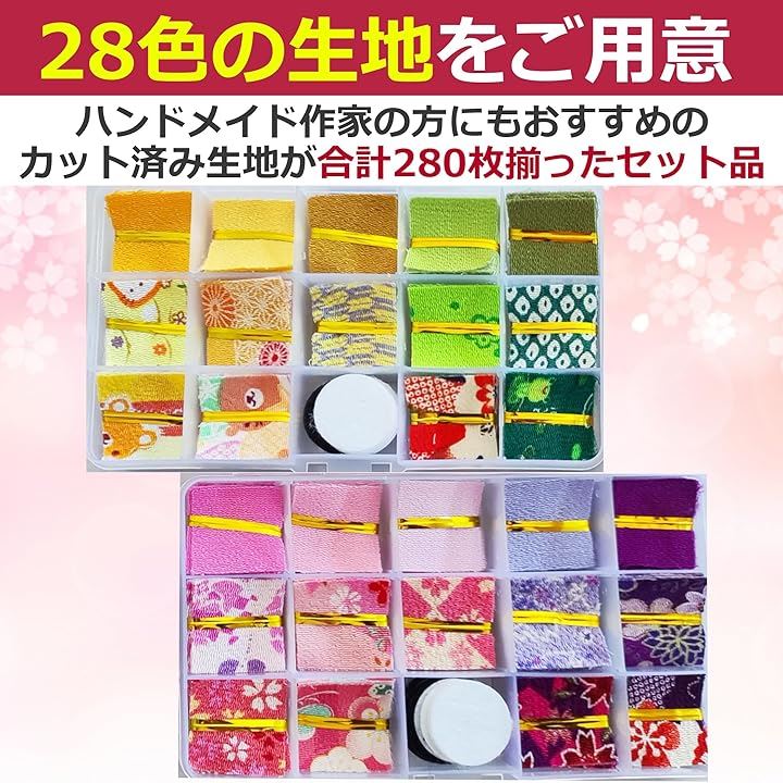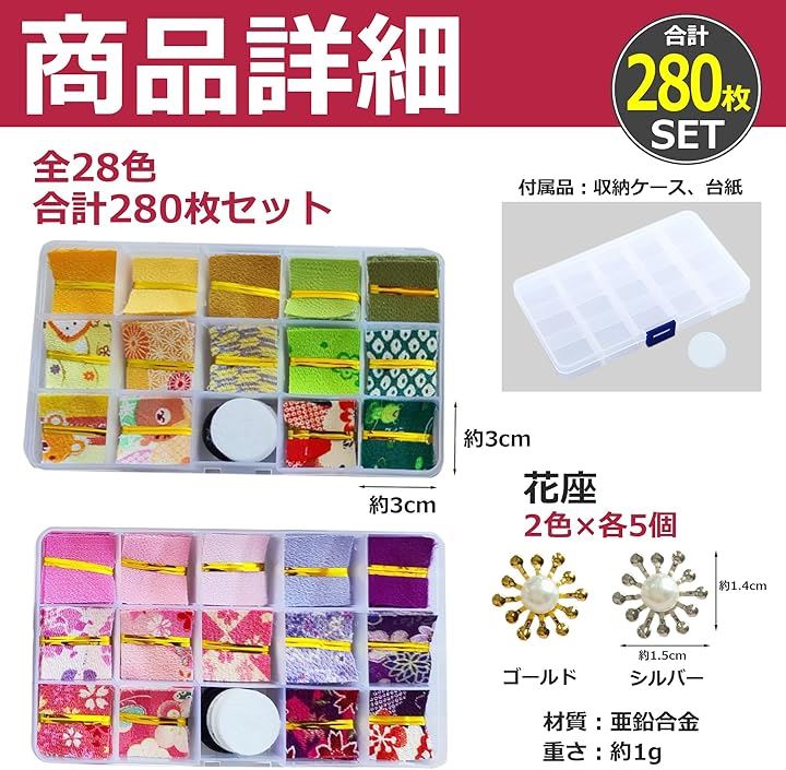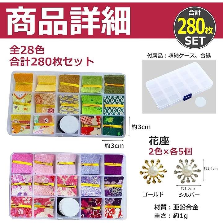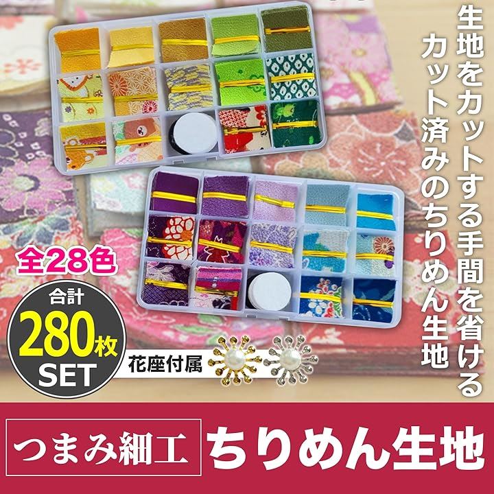 EdisonBrain つまみ細工 カット済み 生地 28色 280枚セット ちりめん クロス フェルト 2色花座 座金付き 和柄 無地 初心者 手芸 教室 キットセット 黄色 緑 ピンク 紫 DIY 自作 手作り