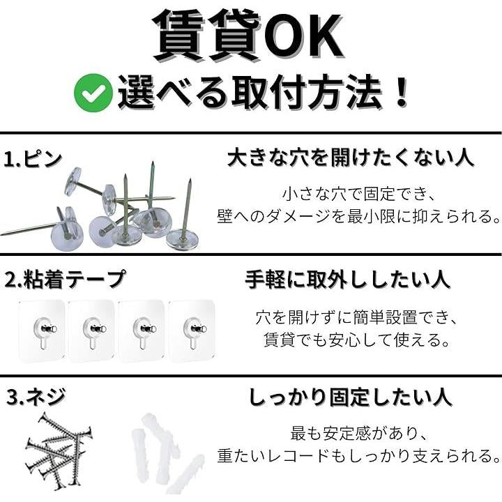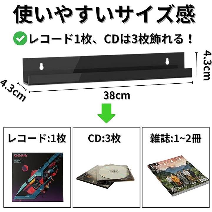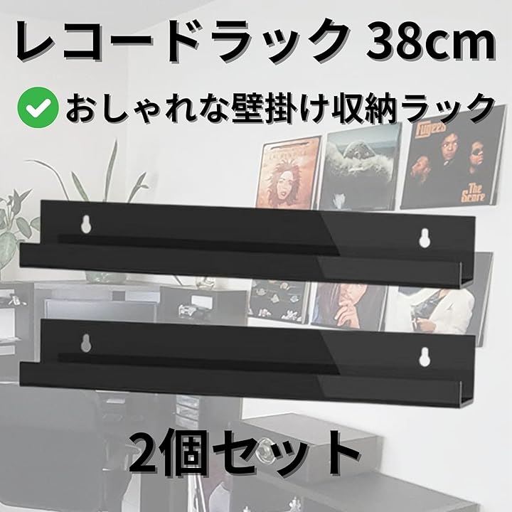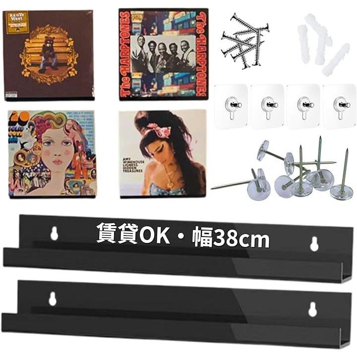 レコード レコードラック 壁 幅38cm 壁掛け 賃貸可能 選べる取付方法 ピンorネジorテープ 石膏ボード 収納 アクリル TR1240 ブラック 2個