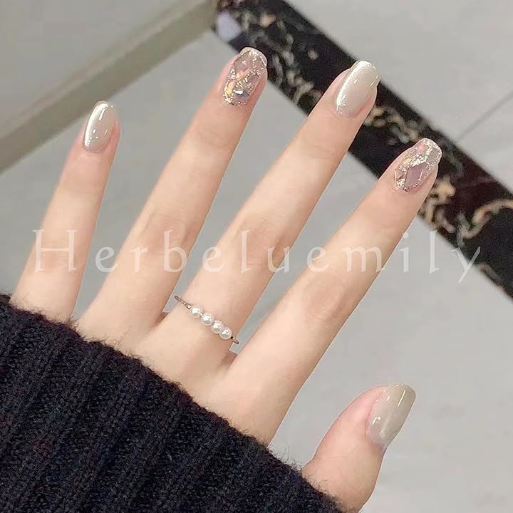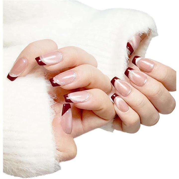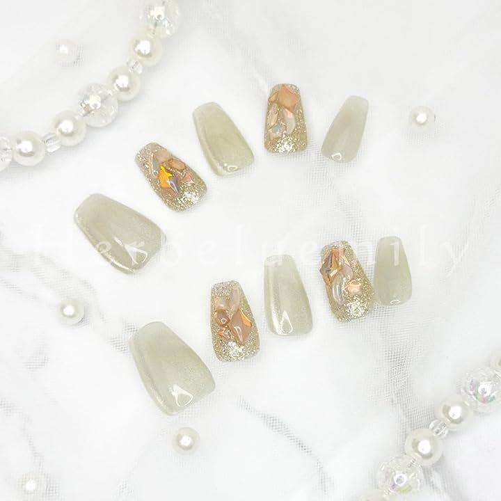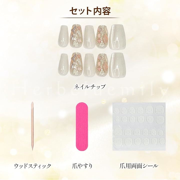 [Herbeluemily] ネイルチップ ネイル プレスオンネイル 手作り マグネット つけ爪 フレンチネイル 10枚 |