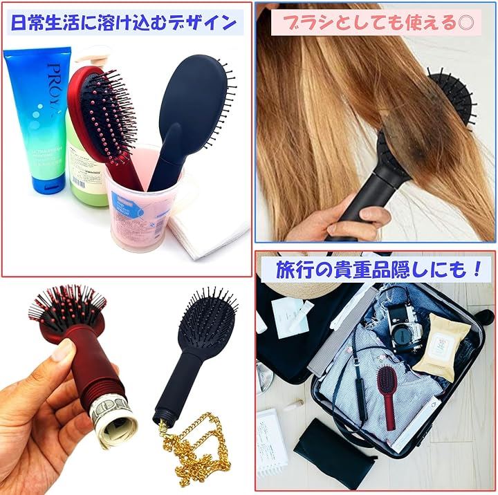 ヘアブラシ型 シークレットボックス 隠し金庫 セーフティボックス カモフラージュ 旅行 貴重品 収納