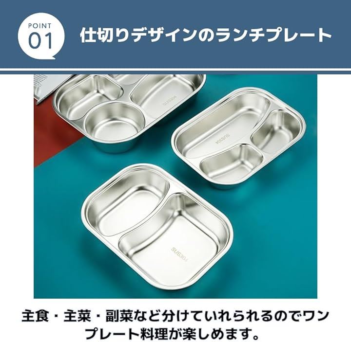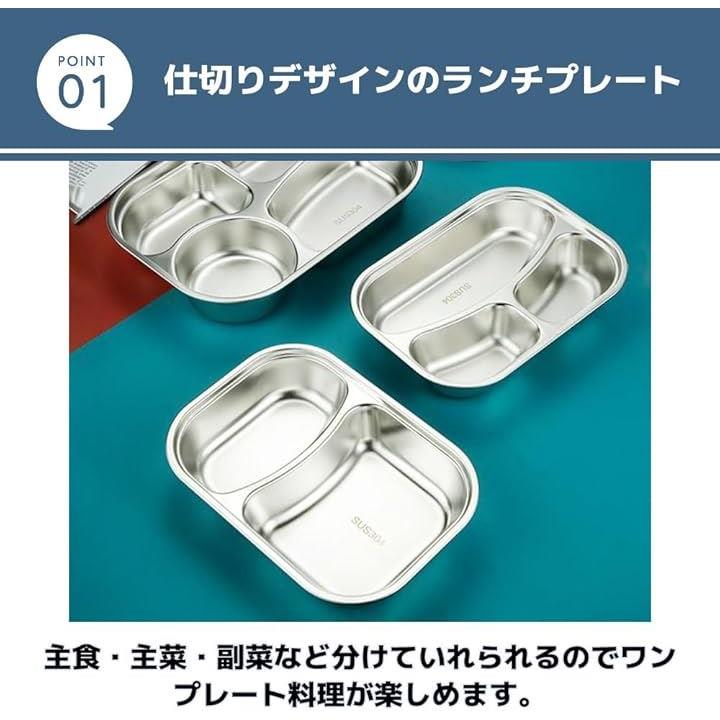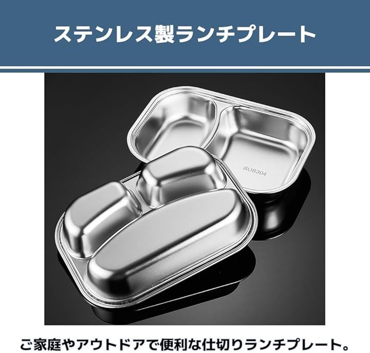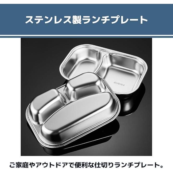 ランチプレート ステンレス 食器 蓋付き キャンプ食器 仕切り皿 ディナープレート 分割