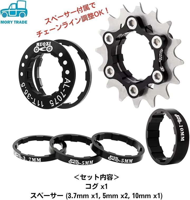 morytrade シングルスピード 変換キット コグ スペーサー スプロケット シマノフリー 対応 SSCX
