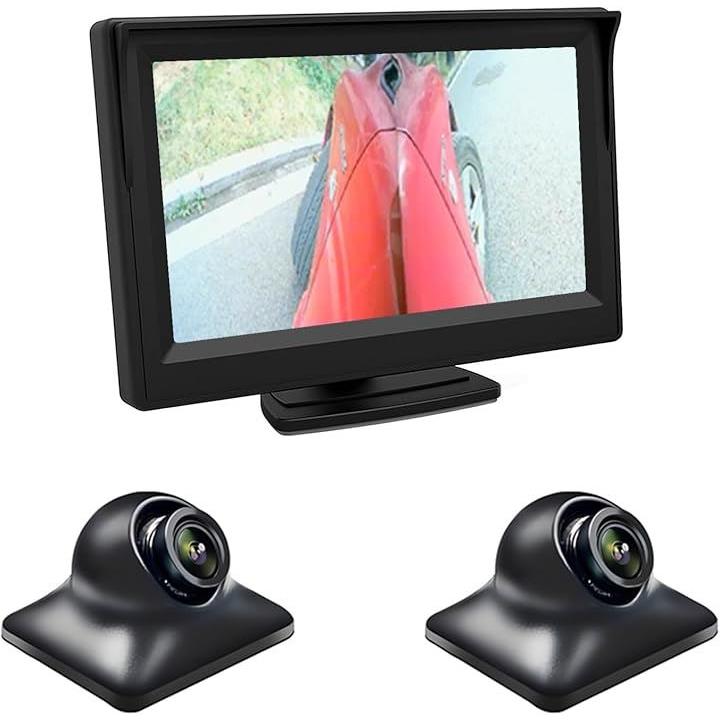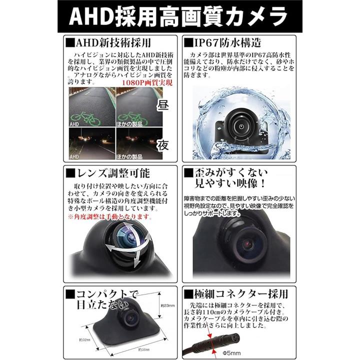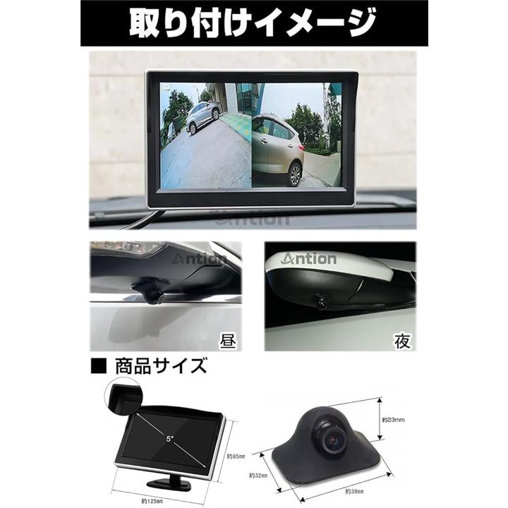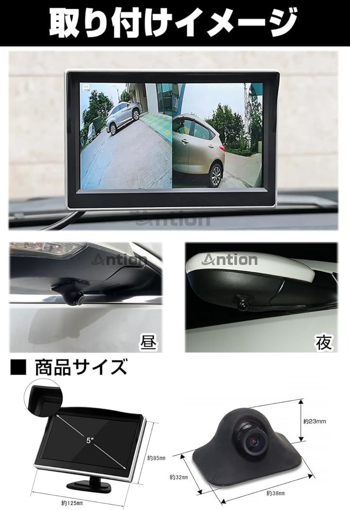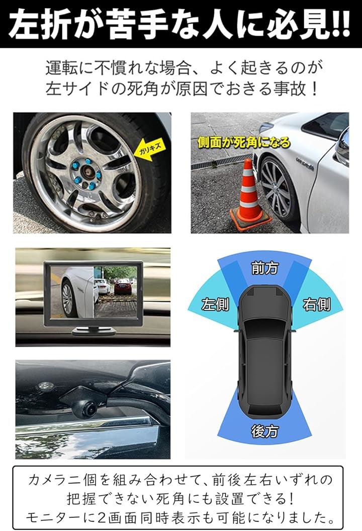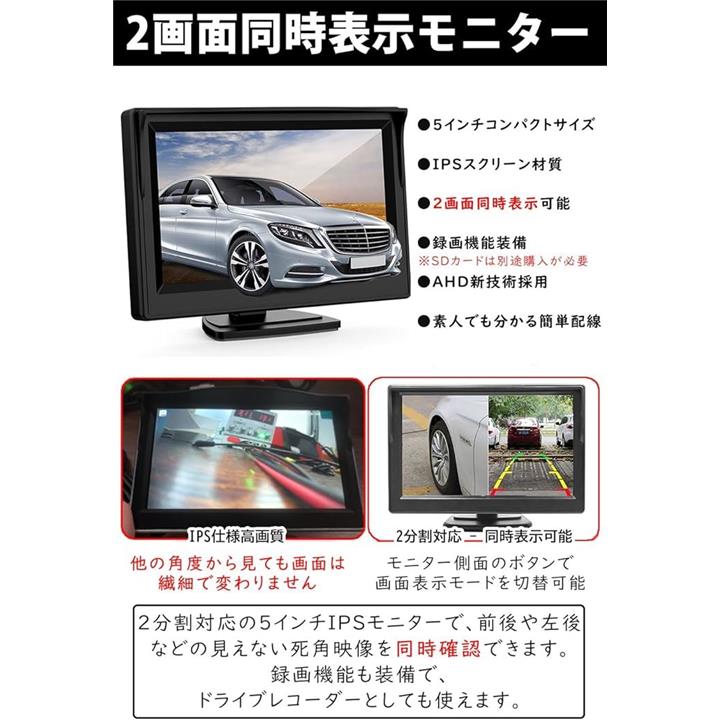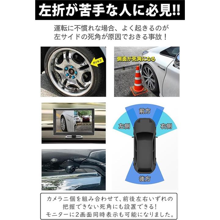 5インチモニター 2個サイドカメラセット AHD IPS液晶モニター 左右後方死角確認 広角120° 360度回転可能 車載カメラ 録画機能あり 暗視機能搭載 配線簡単 初心者向け駐車支援システム 12V 日本語説明書