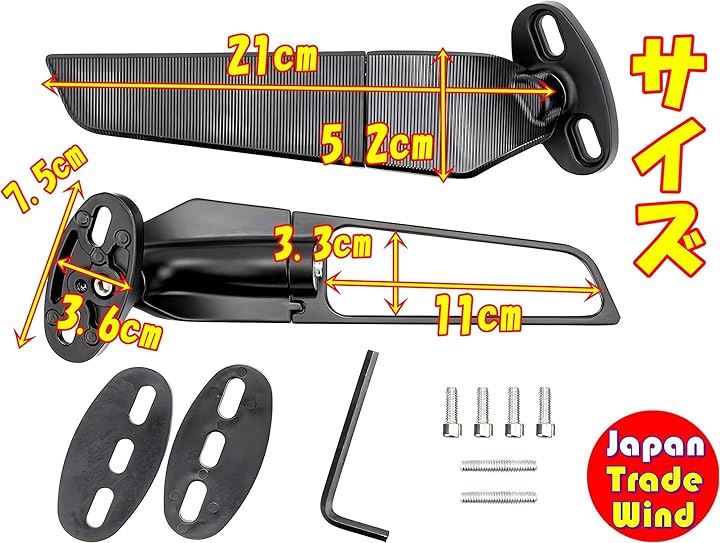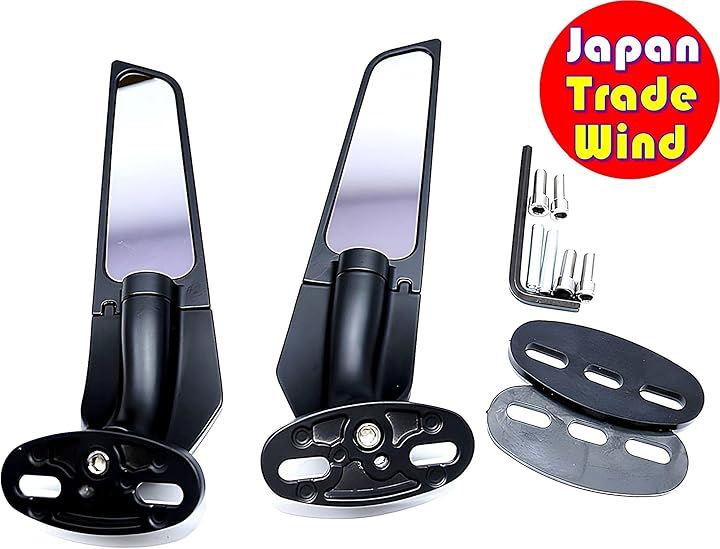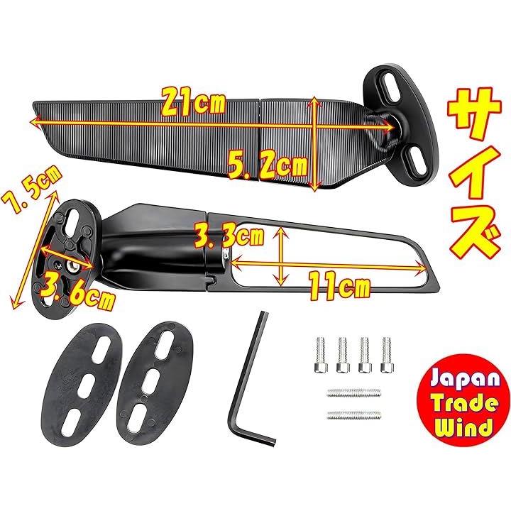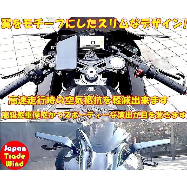 互換品 バイク カウルミラー ウイングミラー ステルスミラー 翼型 スリム 調整可能 左右セット