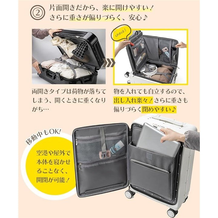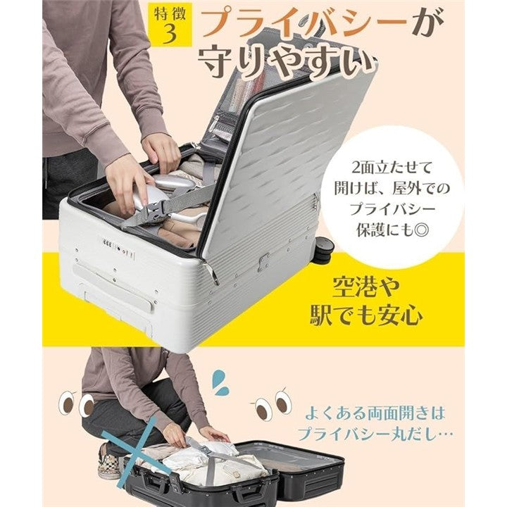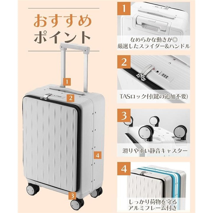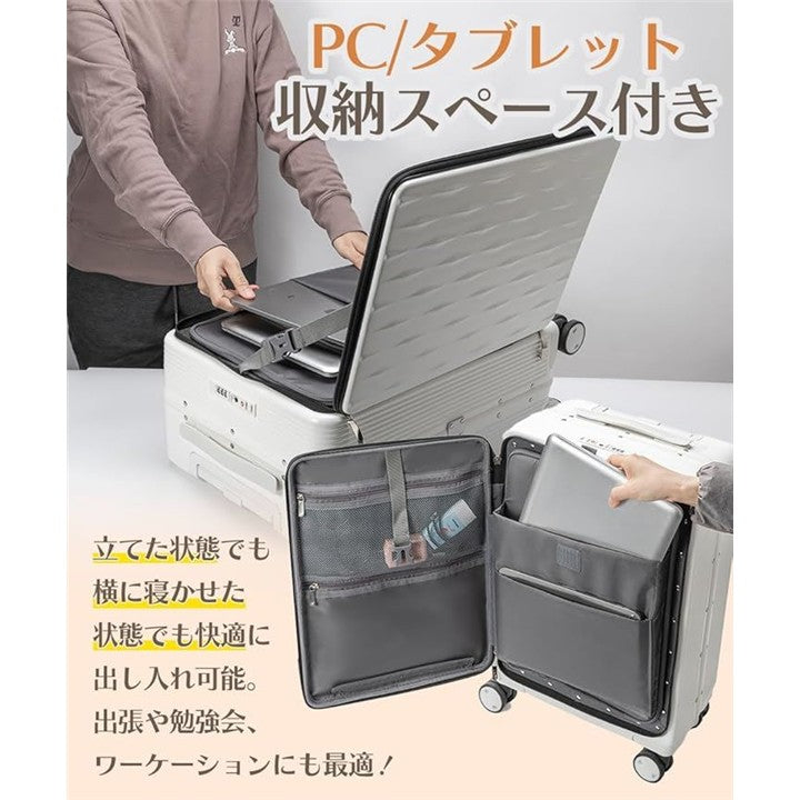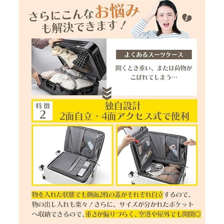 2面立たせて4面アクセス スーツケース キャリーケース 多機能フロントオープン 機内持ち込み キャリーバッグ 大型 静音 ダブルキャスター TSAロック搭載 ファスナータイプ 旅行 ビジネス 出張 耐衝撃 小型