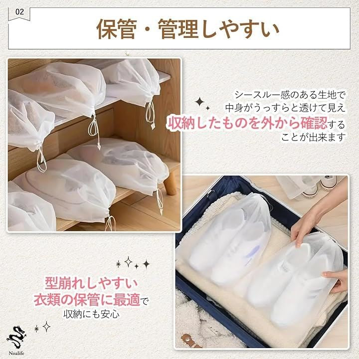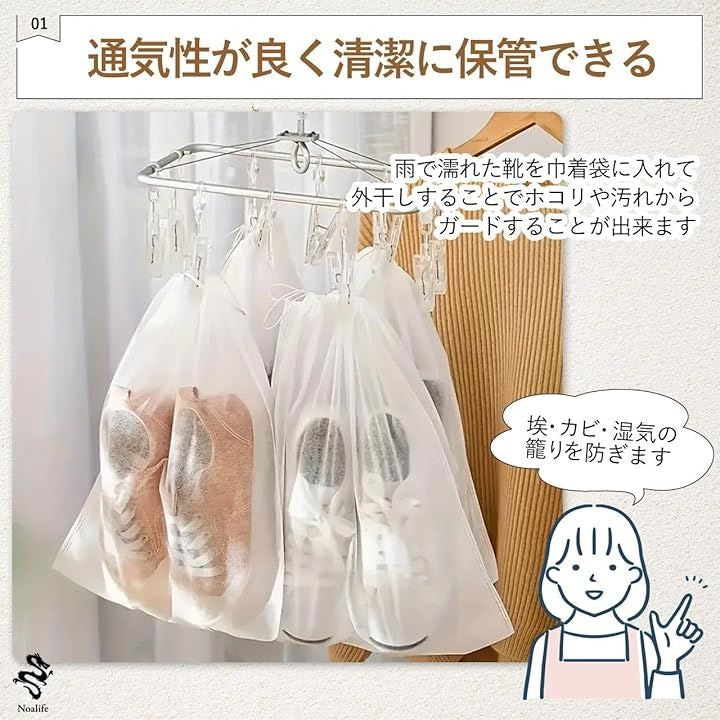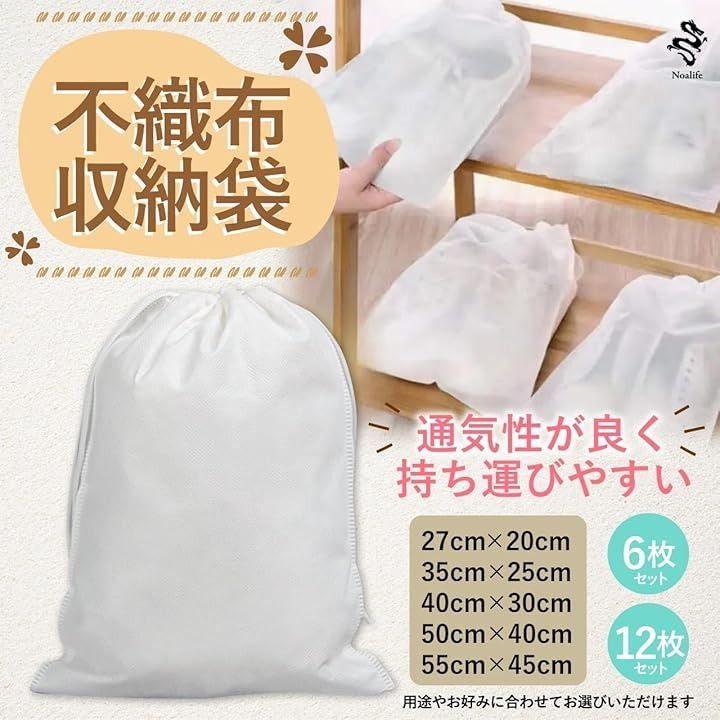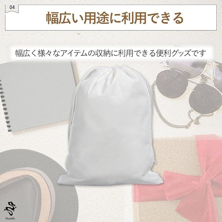 Noalife 不織布収納袋 巾着袋 白 無地 紐付き 巾着 不織布 巾着収納袋 収納 ラッピング 袋 靴 バッグ 衣類 小 大 特大 縦長 おしゃれ 小物入れ |