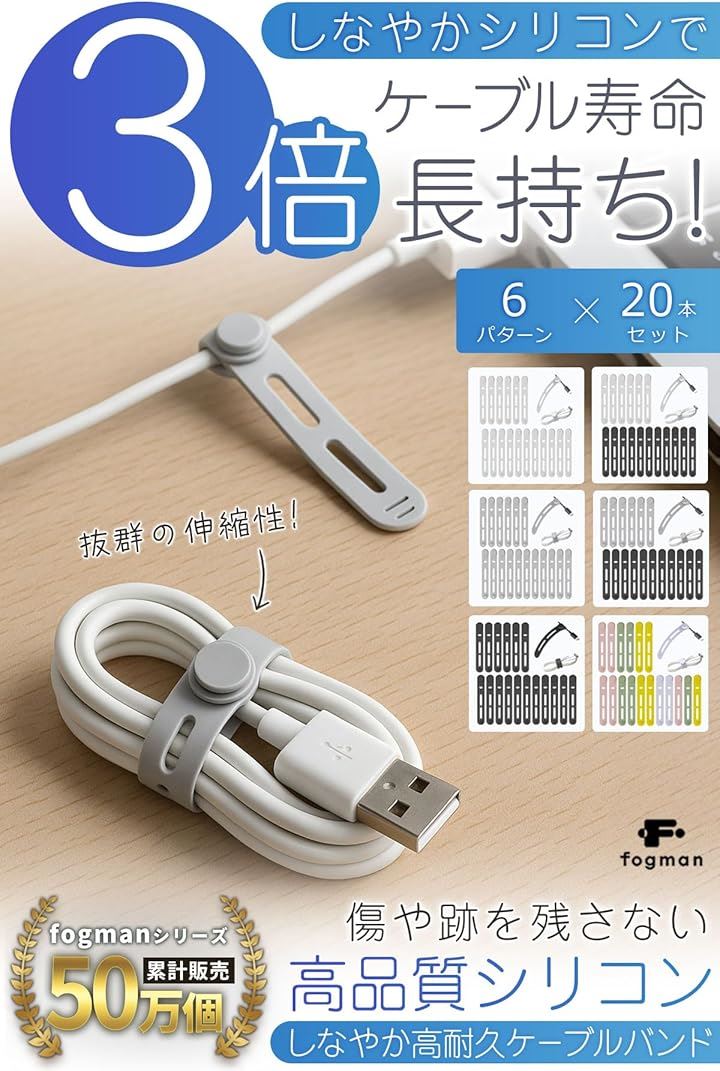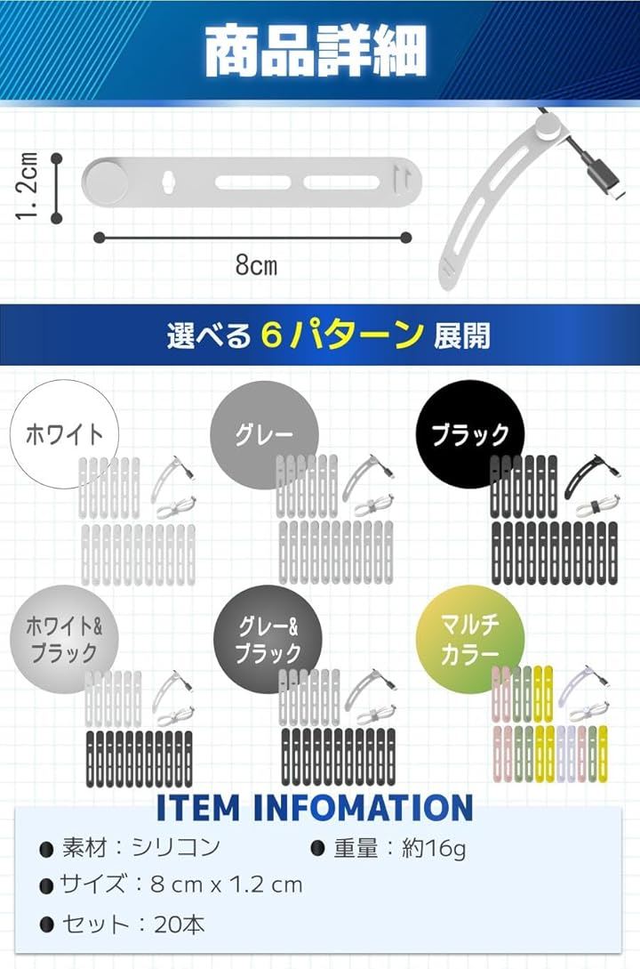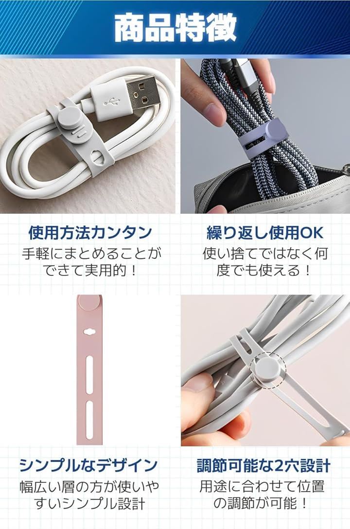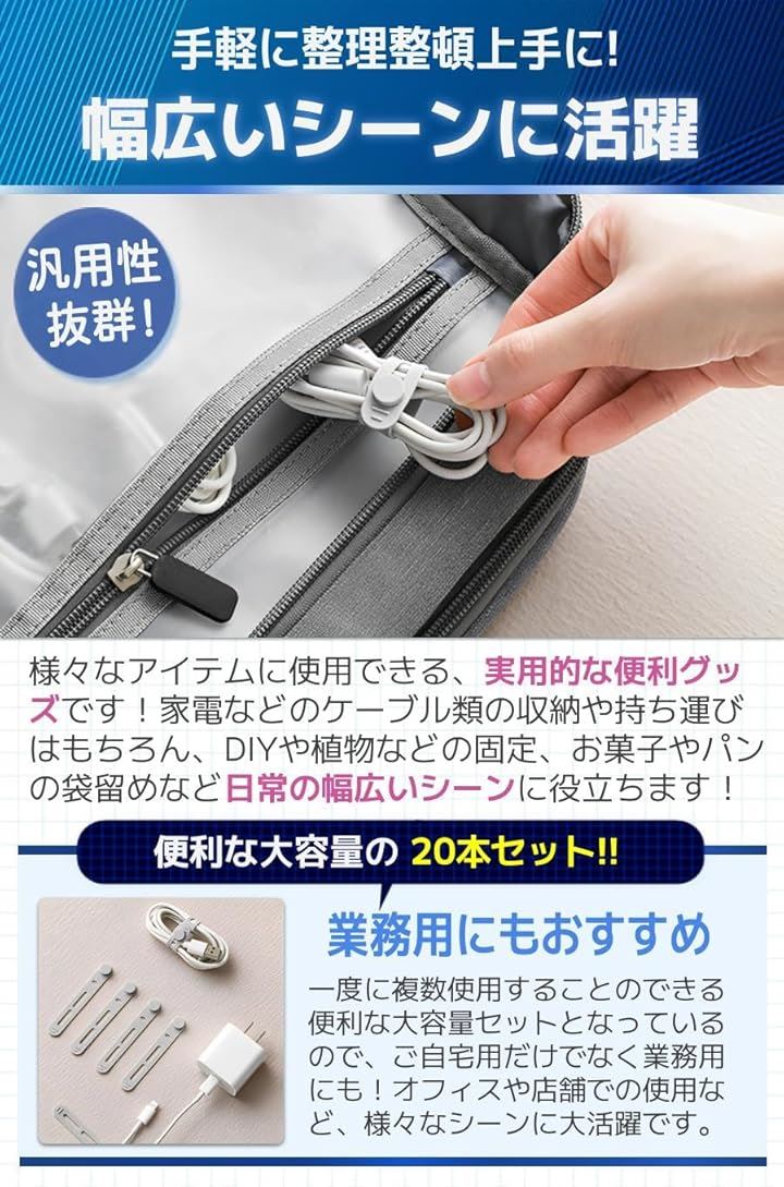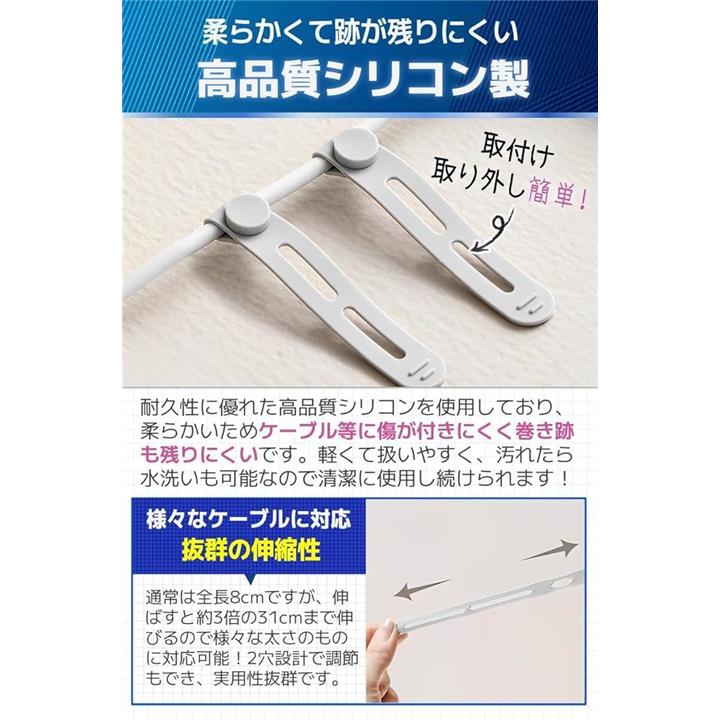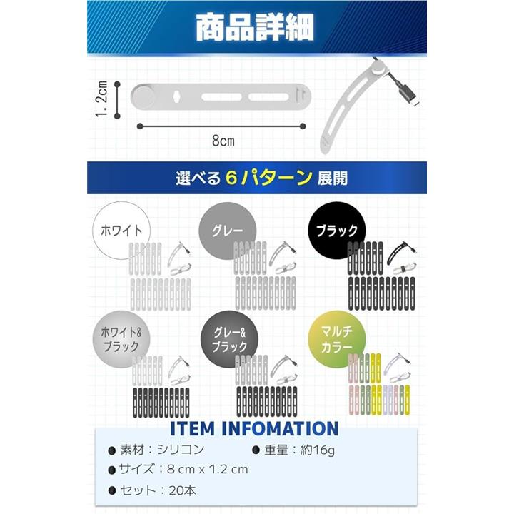 ケーブルクリップ コード まとめる ケーブルバンド シリコン 20本セット