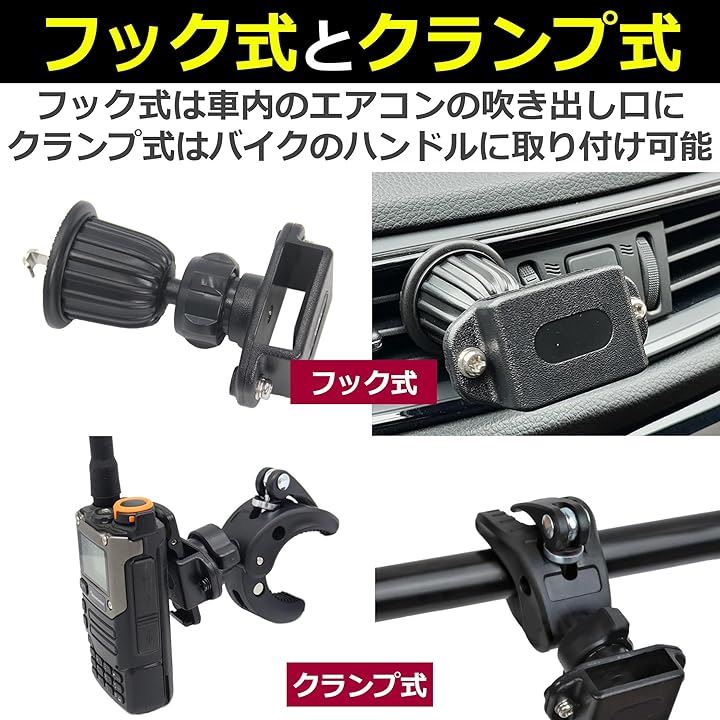 互換品EdisonBrain バイク 車 自転車 無線機 ホルダー 2種セット ベルトクリップ対応 トランシーバー 車載 固定用 脱着簡単 ハンディ機無線機用 エアコン 吹き出し口 フック