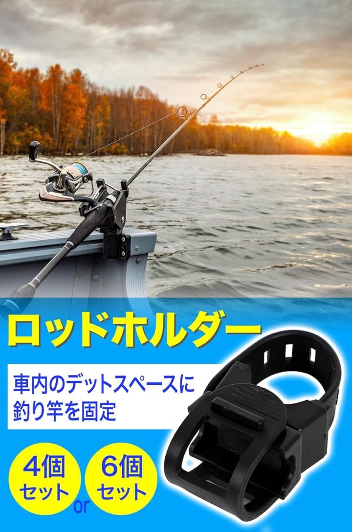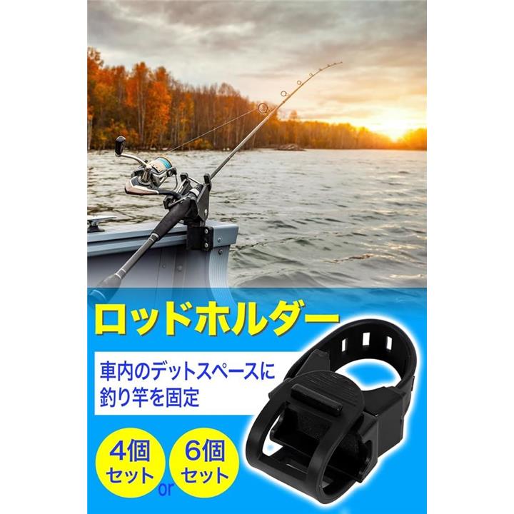 ロッドホルダー 竿掛け 収納 固定 天井 車内 船 回転式 ゴム 吊り下げ 釣り竿 6個セット