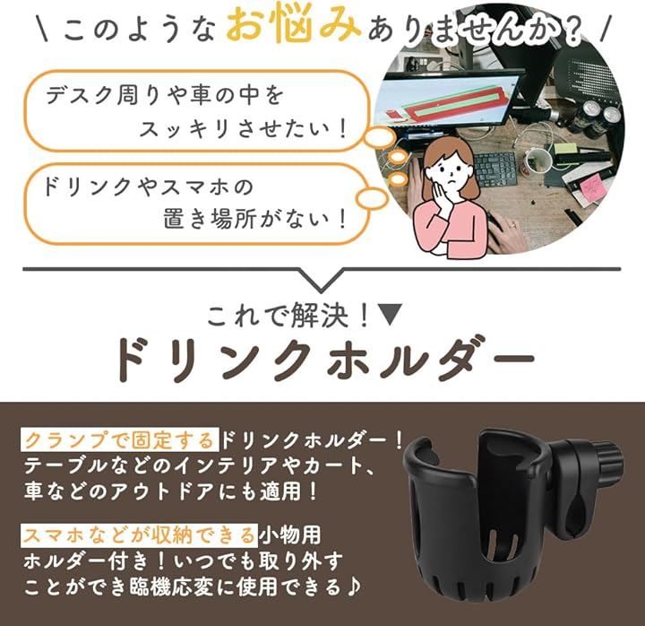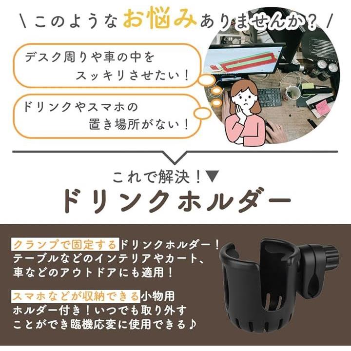 ドリンクホルダー カップ スマホホルダー テーブル マグカップ 小物収納 ブラック