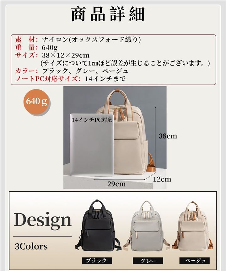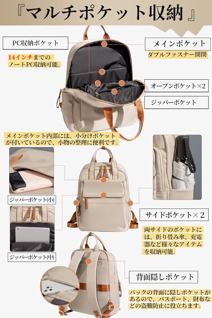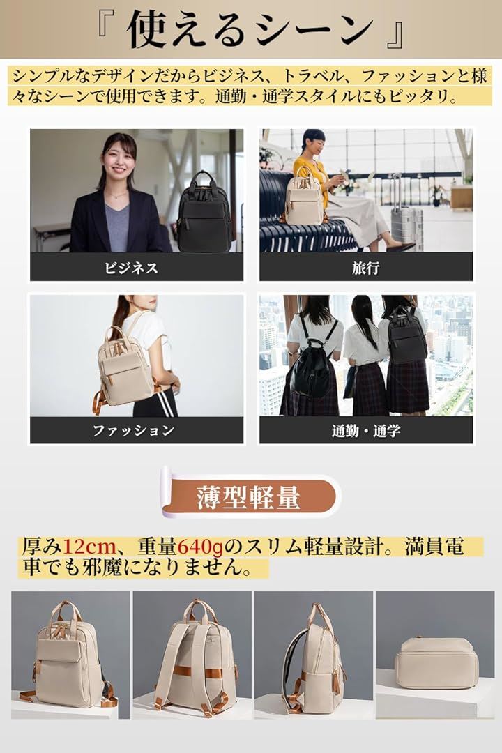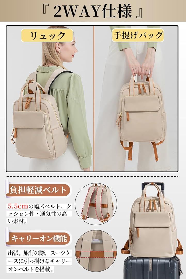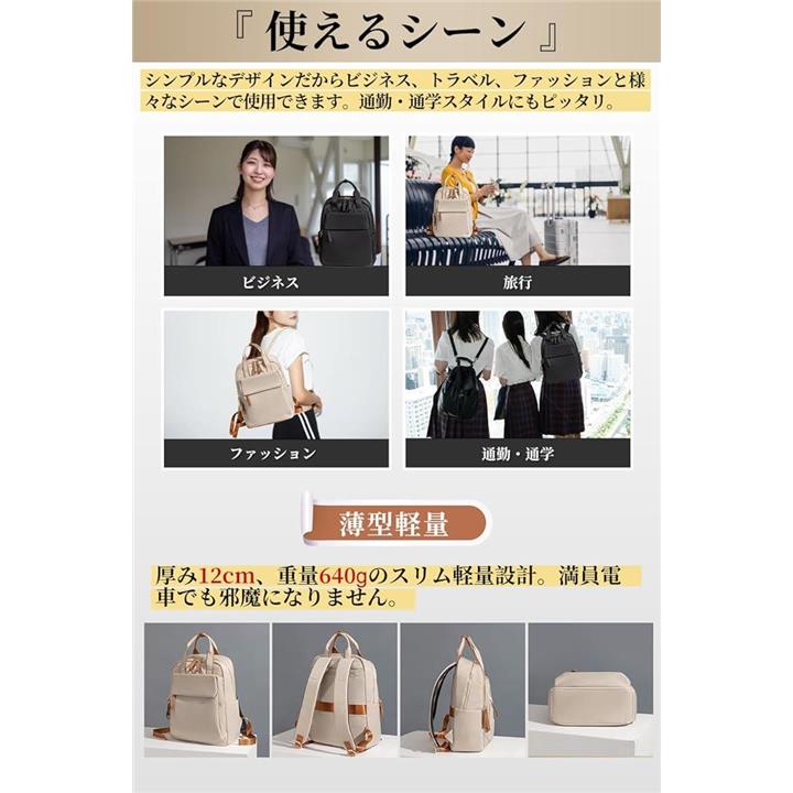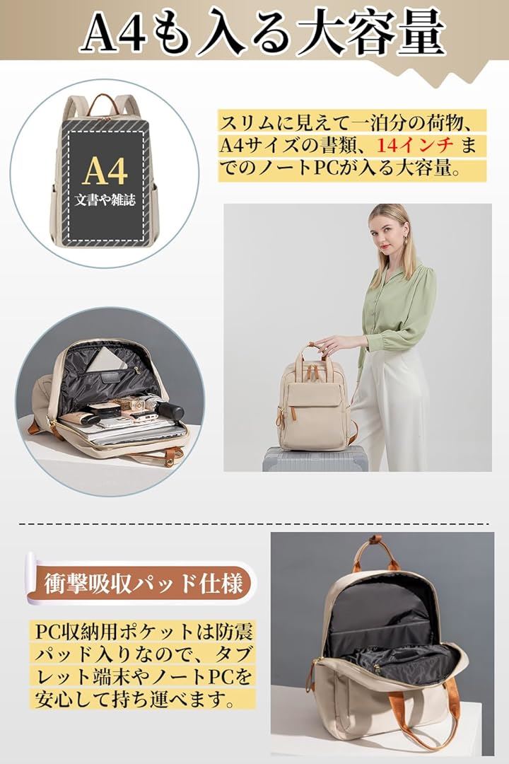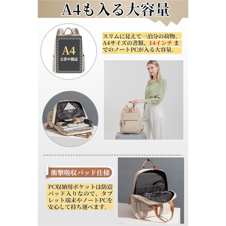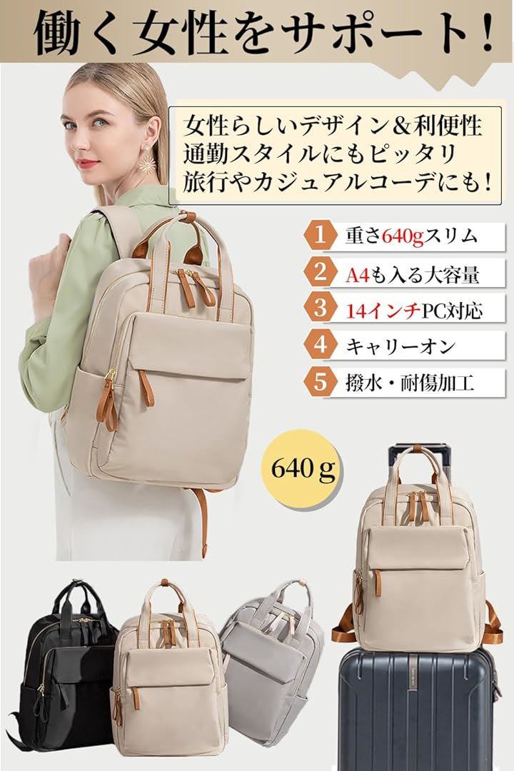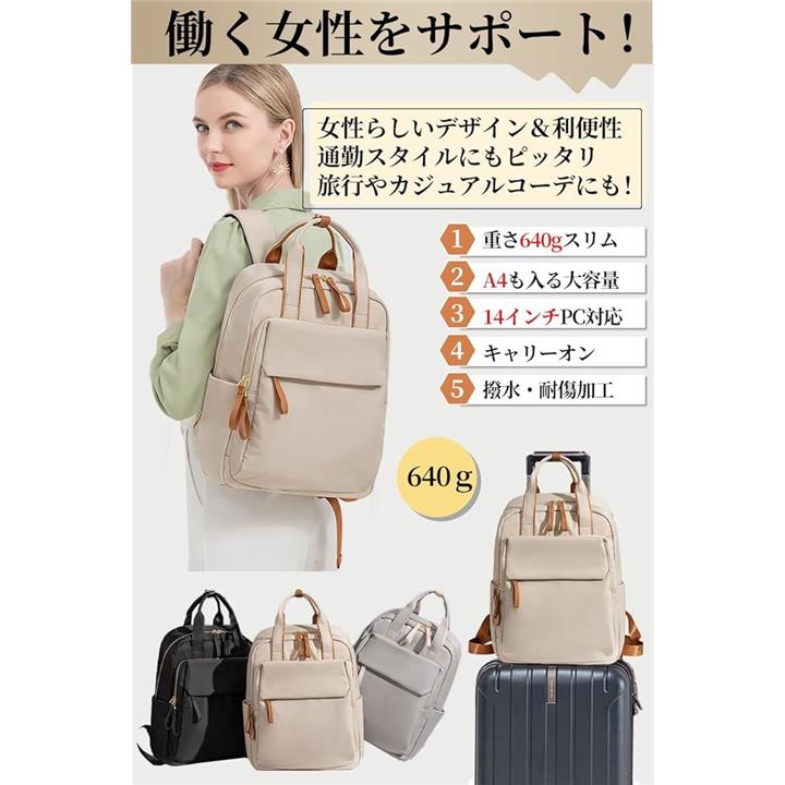 PCリュック レディース パソコンリュック ビジネスリュック PC収納 A4 14インチPC対応 キャリーオン機能 背面ポケット 撥水・耐傷
