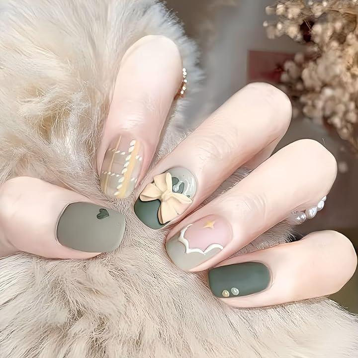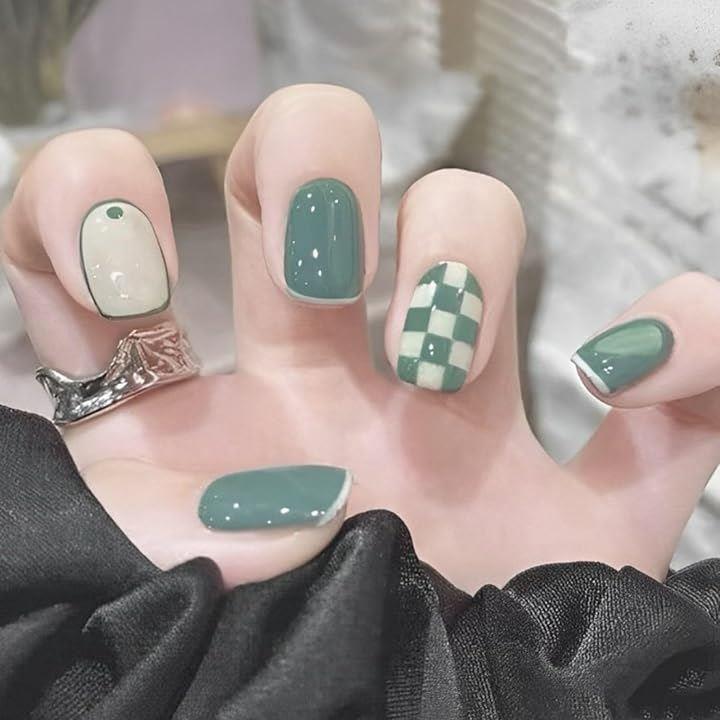ネイルチップ 緑 グリーン シール 韓国 付け爪 シンプル ロング