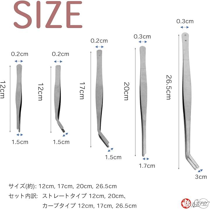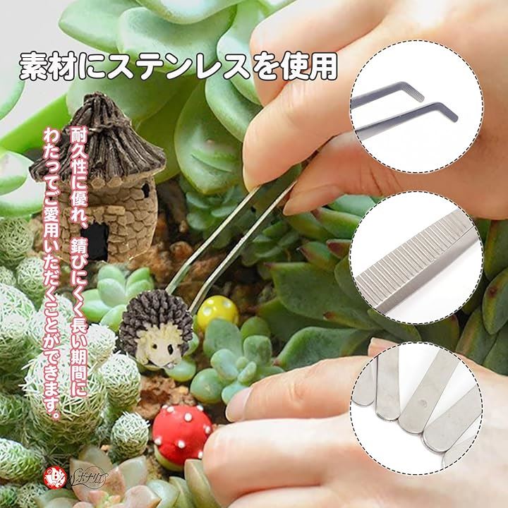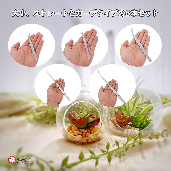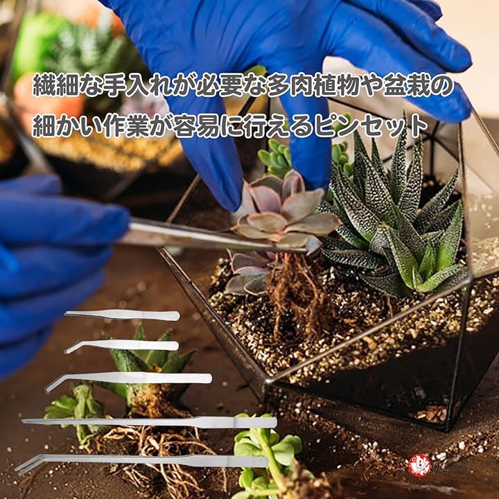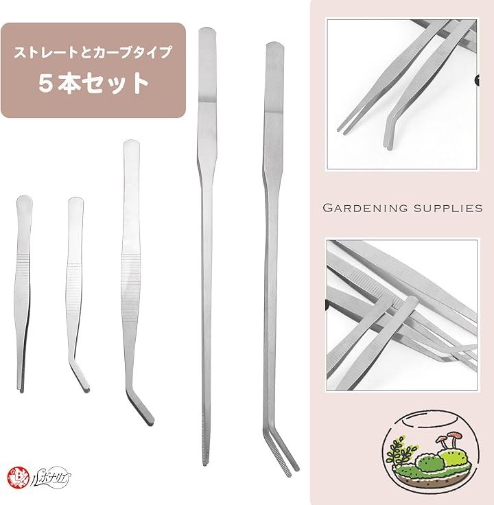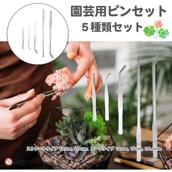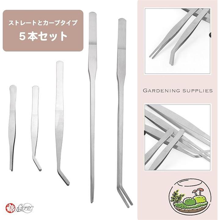 ピンセット 園芸 長い ロング 先曲がり 多肉植物 観葉植物 テラリウム 園芸用ピンセット ステンレス 5個