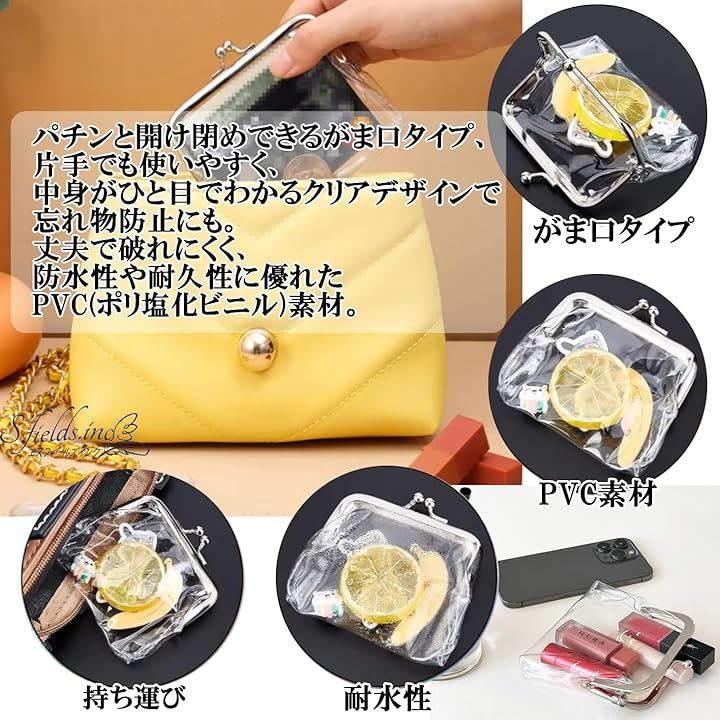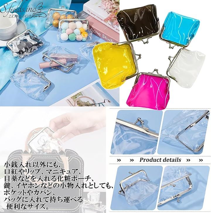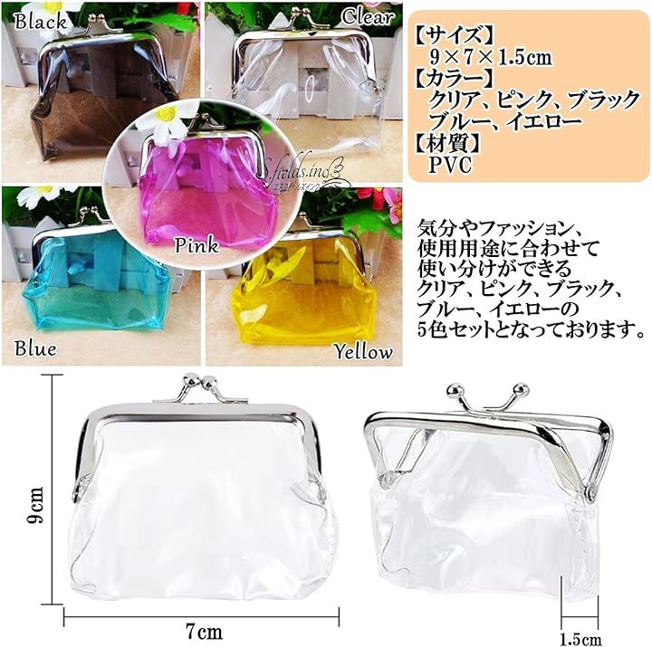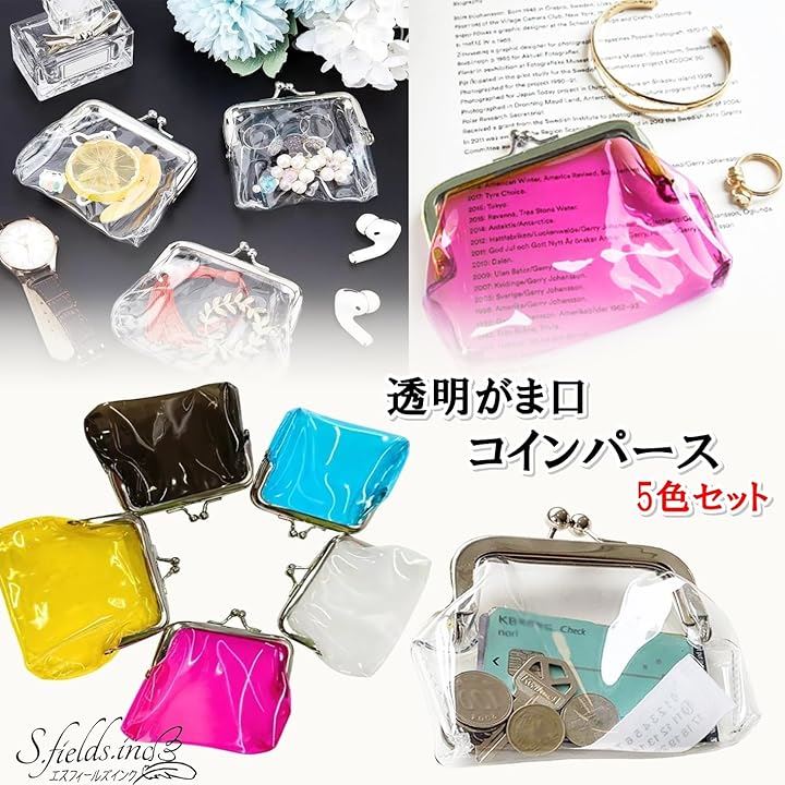 がま口 透明 コインパース 小銭入れ 5色セット クリアポーチ 化粧ポーチ 財布 PVC