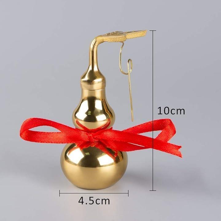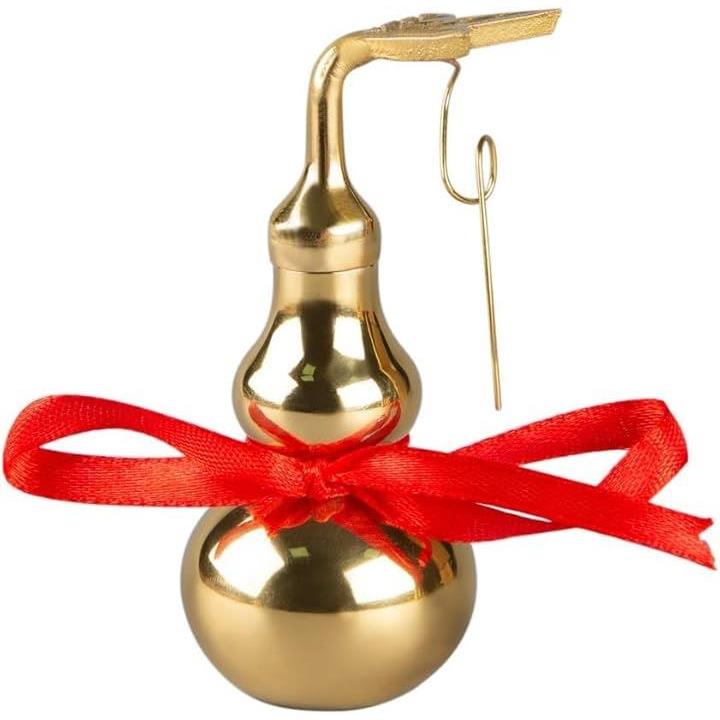 ゴールデンひょうたん型クリスマスオーナメント、赤いリボン付き、伝統的な装飾品 S