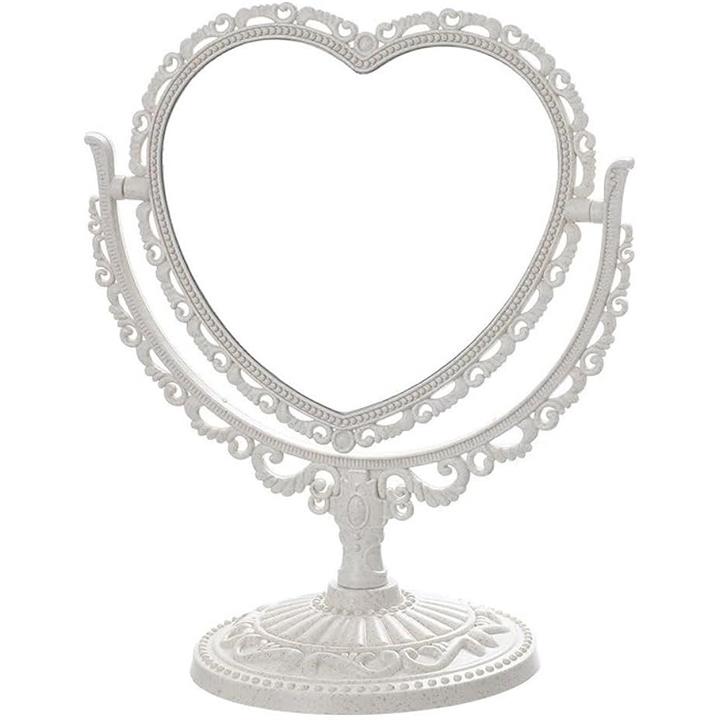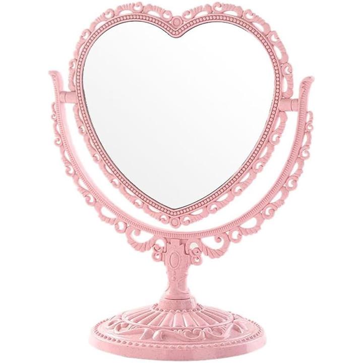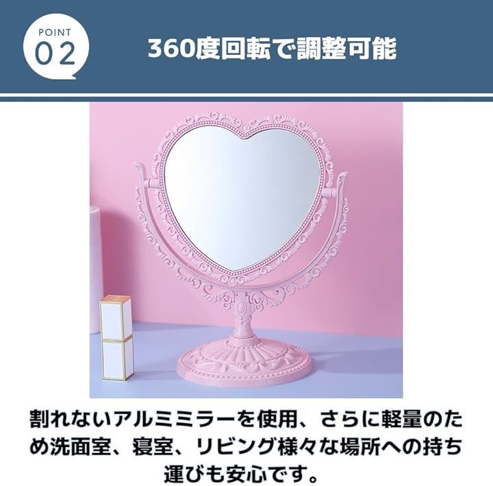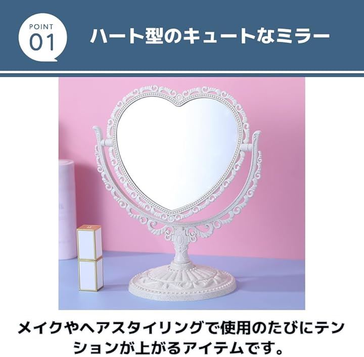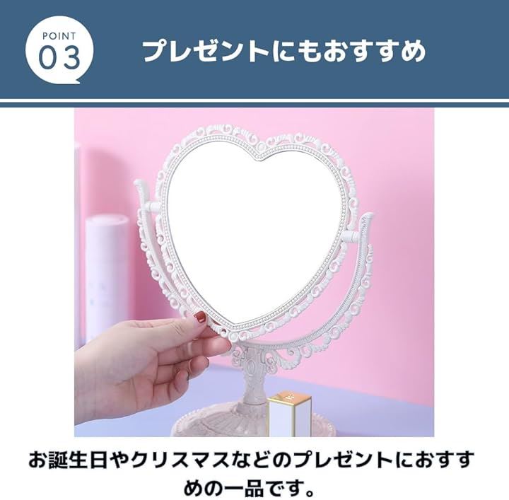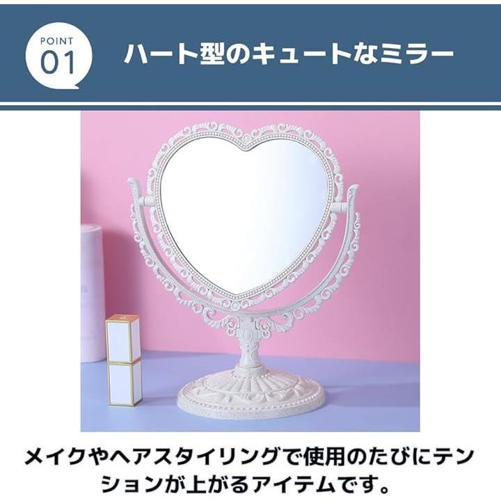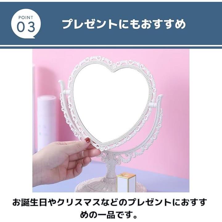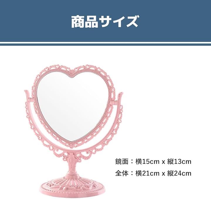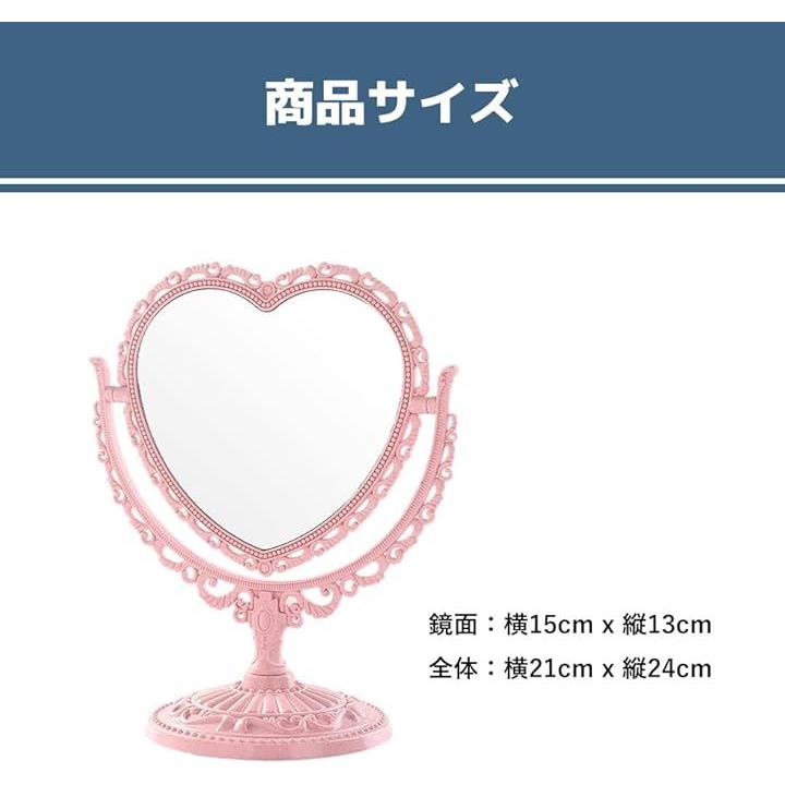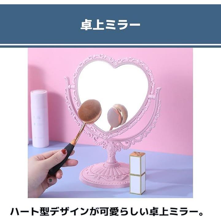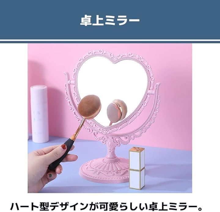 卓上ミラー 鏡 大きめ コスメ ハート型 かわいい お洒落 メイクアップ