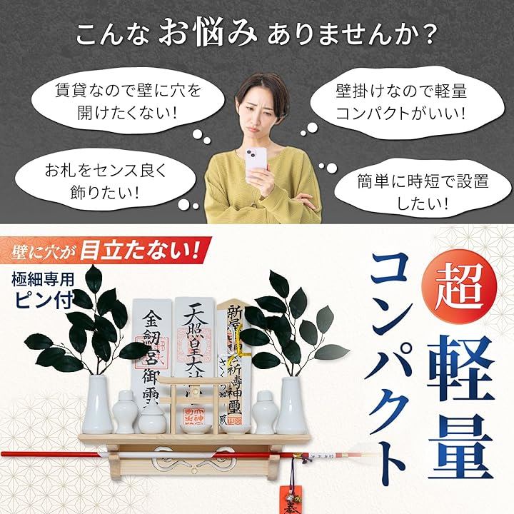棚型 神棚 神明 白松 壁掛け お札立て モダン 棚板 神具 本体のみ