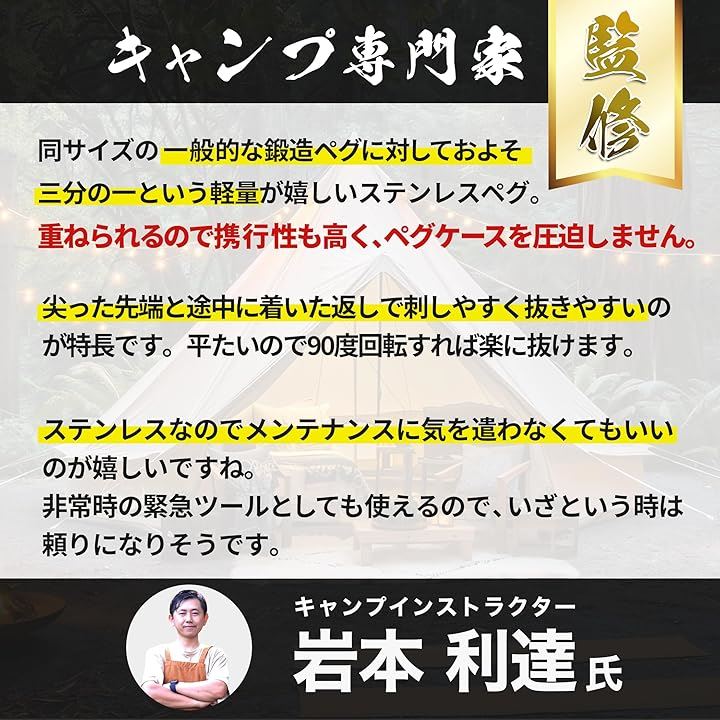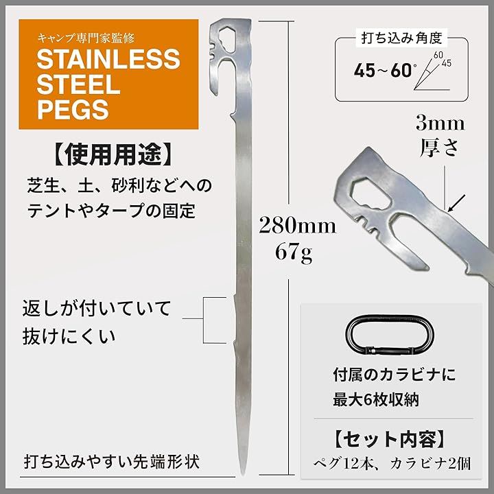 キャンプ専門家監修テント タープ ペグ一体成型・28cm ステンレス SUS420 鍛造 アウトドア 登山 河原 芝生 土 砂利 EdisonBrain