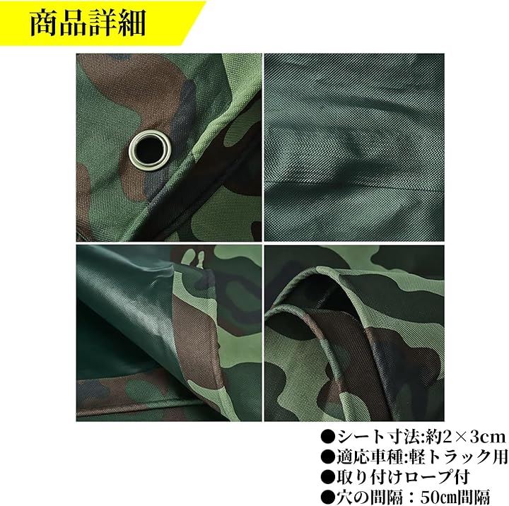 軽トラック 荷台シート トラックシート 防水シート ハトメ 50cm間隔 取付ロープ付き